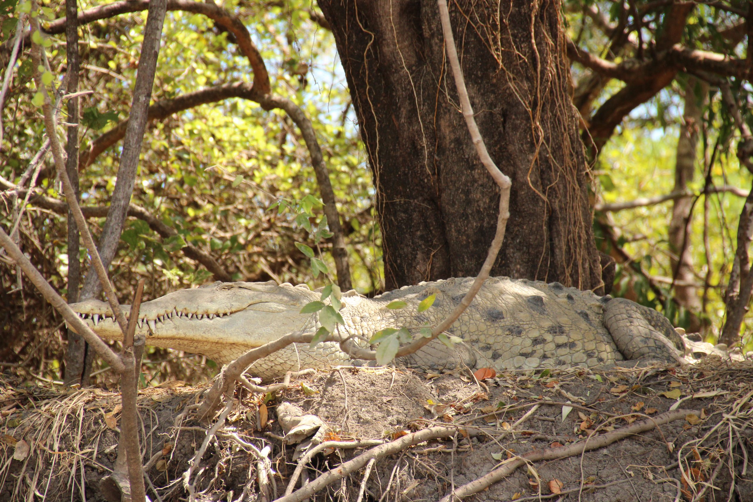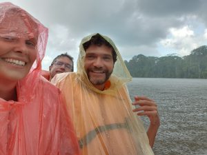 Die 3. Tour war dann wirklich mal eine Tour. Wir fuhren mit einem kleinen Boot durch die Flussarme und hielten nach Tieren Ausschau. Zunächst wurden wir aber von einem heftigen Schauer erwischt:
