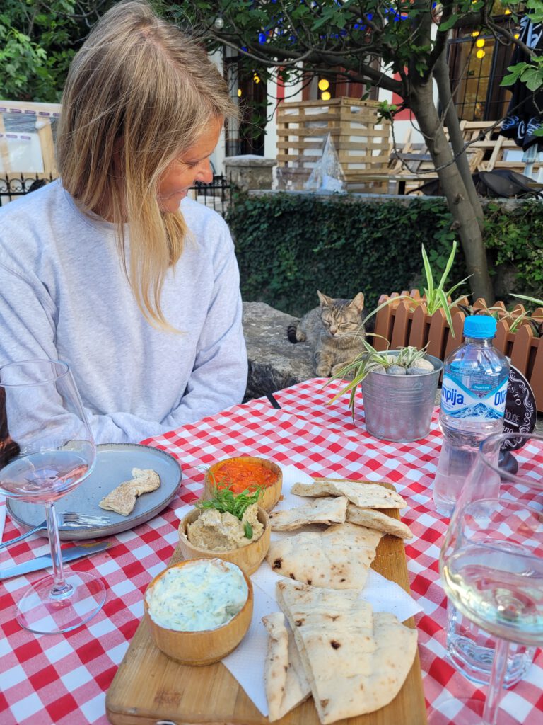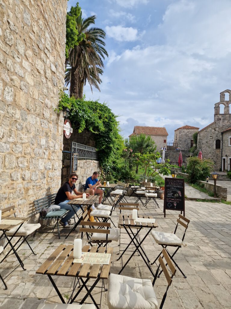 In Montenegro besuchten wir die drei Küstenstädte Petrovac na moru, Budva und Kotor. Die Atmosphäre gefiel uns grundsätzlich überall. Von Petrovac aus planten wir bei einem Espresso Tonic (DAS Getränk unseres Frühjahrs) unsere weitere Zeit in dem kleinen, dünn besiedelten Land. Für den Abend musste zunächst ein Ort mit Fußballkneipe her, damit ich den letzten Spieltag der Serie A sehen konnte, um dem SSC Napoli im engen Meisterschaftsrennen die Daumen zu drücken. Deshalb fuhren wir in den Partyort Budva mit überbordendem Angebot an Cafes, Bars und Restaurants. Vor allem die Altstadt gefiel uns dort sehr gut. Sie könnte so eins zu eins in Italien stehen – die Venezianer haben mal wieder ihre Spuren hinterlassen. Es war zwar voll, aber in den verwinkelten Gassen fand man immer ein idyllisches Plätzchen. Zusätzlich gibt es einen netten Strand, an dem wir herrlich in der Sonne braten konnten. Der dritte Ort, Kotor, ist so etwas wie das touristische Zentrum Montenegros und wird auch von Kreuzfahrtschiffen angesteuert. Dementsprechend trubelig war es hier.
