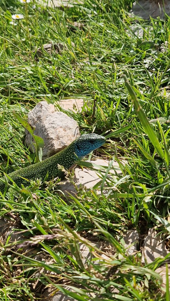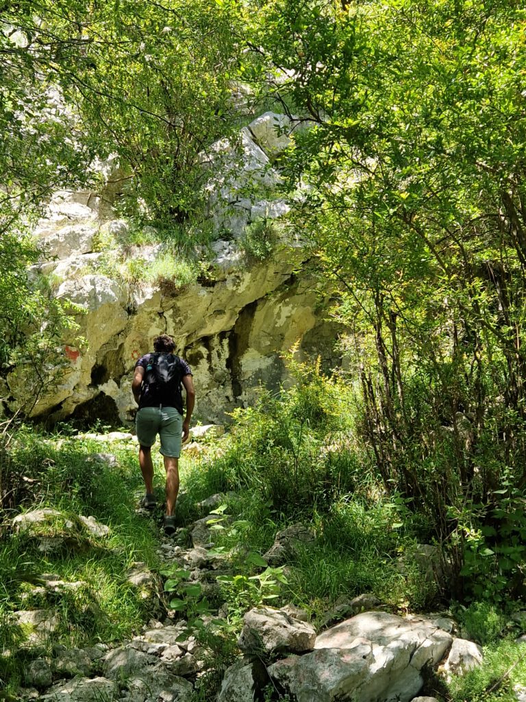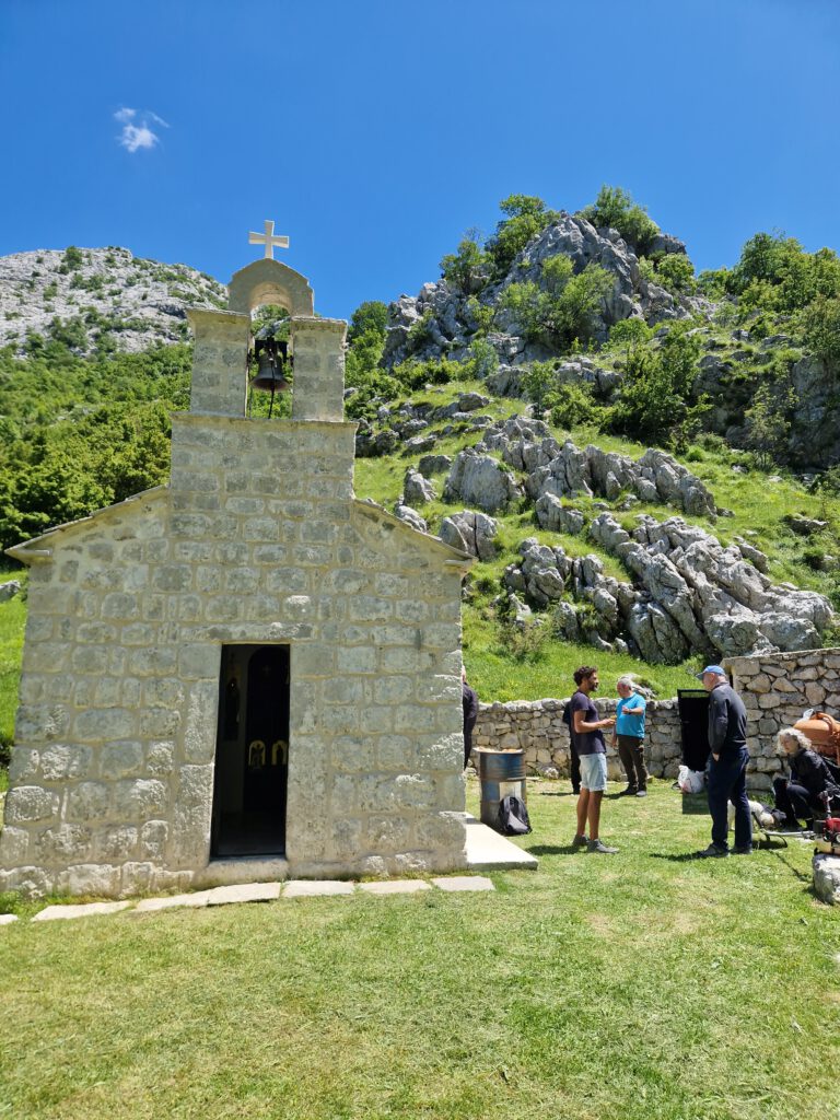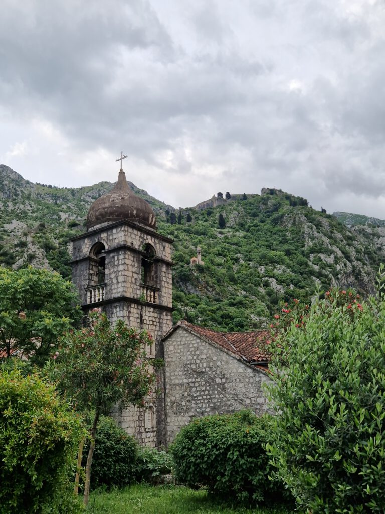 Unerwarteterweise wurde die Wanderung, die wir am zweiten Tag bei Kotor unternahmen, zu etwas ganz Besonderem. Mit der Bucht im Rücken erklommen wir einen felsigen Berg. Langsam aber stetig ging es bergauf. Wenn wir uns umdrehten, konnten wir das tolle Panorama der von Bergen flankierten Bucht bewundern. Der Weg war die meiste Zeit gut zu erkennen und begehbar. Je weiter wir wanderten, desto mehr gab es jedoch zugewachsene Passagen. An einer solchen Stelle war ich kurz vorm Herzinfarkt, als plötzlich eine riesige Schlange schräg von vorne an uns vorbeischoss. Sie war vielleicht einen Meter von mir entfernt und eben so lang. Zum Glück schien sie sich genau so vor uns erschrocken zu haben und verschwand sofort im Dickicht. Wir wussten, dass es hier verschiedene Schlangen, auch giftige, geben sollte , aber diese Begegnung hat uns dann doch ziemlich überrascht. Reichlich aufgewühlt achteten wir ab sofort auf jeden Schritt und stampften ordentlich auf, damit sich alle möglichen Kriechtiere rechtzeitig verziehen konnten. Oben auf dem höchsten Punkt der Wanderung wollten wir bei einer kleinen Kapelle mitten im Nirgendwo eine Pause einlegen. Kaum erblickten wir sie, wunderten wir uns, dass dort mehrere Menschen standen und saßen und von üppig gefüllten Tellern aßen. Die Kirche war dem heiligen Nicolai gewidmet und es war just sein Ehrentag. Deshalb hatte sich der Priester mit einigen Gefolgsleuten und sehr viel Essen auf den Weg auf den Berg gemacht. Wir kamen genau richtig. Nach einer kurzen Begrüßung wurde auch uns ein Teller und ein Glas Wein gereicht. Wir unterhielten uns lange mit einem mittlerweile in England lebenden Ehepaar auf Heimatbesuch und machten uns nach einer Stunde beschwingt auf den Rückweg. Auf dem Weg nach unten begegneten wir noch mindestens sieben weiteren Schlangen in unterschiedlicher Größe. Die meisten verschwanden genauso schnell, wie sie aufgetaucht waren. Aber ein besonders großes Exemplar fiel mir am Hang quasi direkt vor die Füße und schlängelte sich dann gut sichtbar, ziemlich hektisch von dannen. Nach unserer Recherche war keine der Schlangen eine der giftigen Hornottern, aber aufregend war es trotzdem. Ach ja: Der SSC Napoli ist Meister geworden!