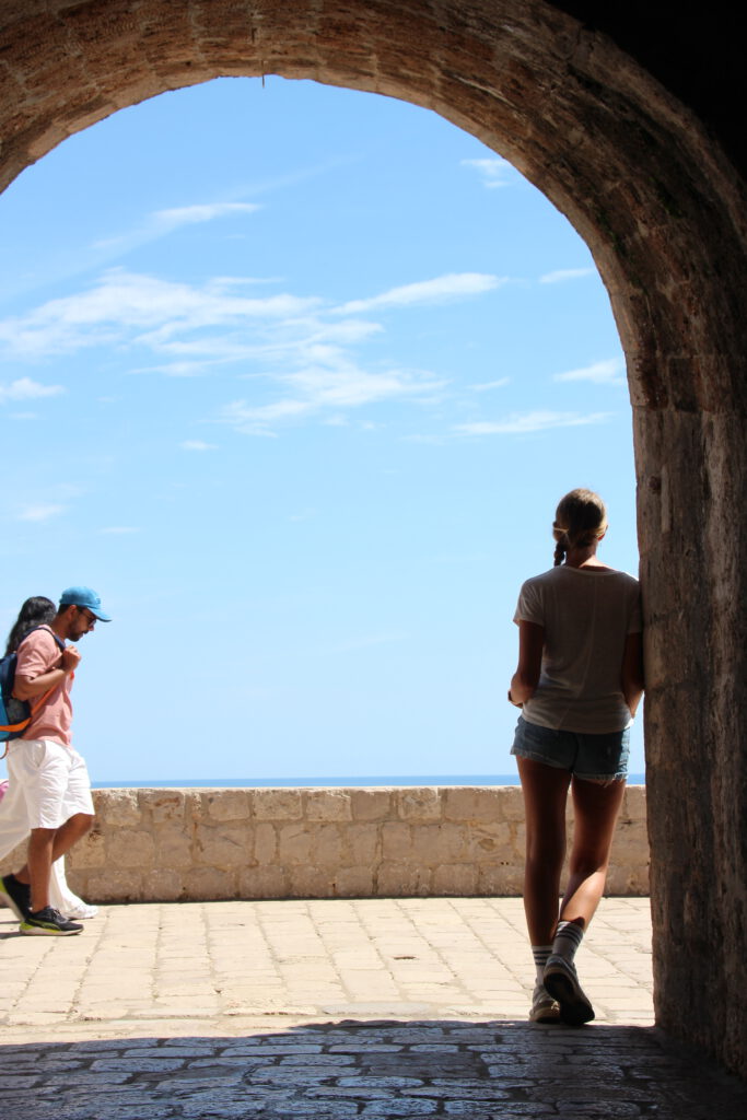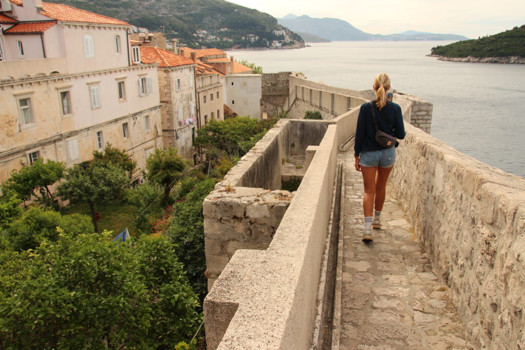 Wir waren schon zweimal mit Moby Dick in Kroatien, aber immer im Hochsommer. Da war es uns zu heiß für das südliche Dubrovnik. Doch nun war die perfekte Gelegenheit, durch die Game of Thrones Kulissenstadt zu schlendern. Wir parkten auf einem Parkplatz etwas außerhalb und fuhren mit den Rädern in Richtung Altstadt (von wegen: überwiegend flach, google!). Die Altstadt ist wirklich wunderschön, aber mit Abstand auch die vollste Stadt, die wir bisher besucht haben. Im Sommer sollen bei 40.000 Einwohnern bis zu 15.000 Tagestouristen mit Bus oder Kreuzfahrtschiff die Stadt besuchen – puh! Um den Massen zu entgehen, suchten wir uns einen einsamen Sonnenuntergangsstrand und beschlossen am nächsten Morgen ganz früh aufzustehen, um vor dem großen Ansturm auf der Stadtmauer zu sein – beides eine gute Idee!