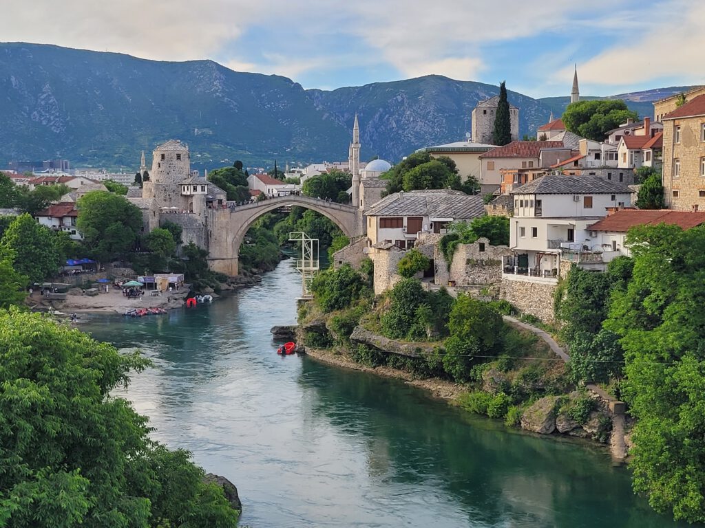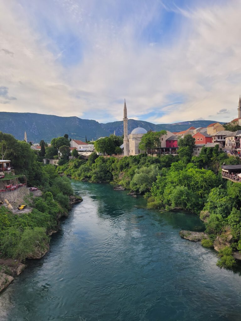 Es hat mich dann wieder ein wenig Überzeugungsarbeit gekostet, Linda zu überreden, mit mir nach Bosnien und Herzigowina zu fahren. Wir hatten wenig Vorstellungen von dem Land, doch nach einer kurzen Recherche im Reiseführer und auf dem ein oder anderen Reiseblog war mir ganz schnell klar: Da will ich hin! Zunächst zog es uns in den Ort Mostar mit seiner berühmten osmanischen Brücke, die den Fluss Neretwa romantisch überspannt. Hier bekamen wir einen ersten Eindruck von der Vermischung von Orient und Okzident. Hier Moscheen mit ihren hoch aufragenden Minaretten, dort katholische Kirchen und dazwischen eine angenehme Stimmung in der Altstadt, umgeben von grün bewaldeten Hügeln.