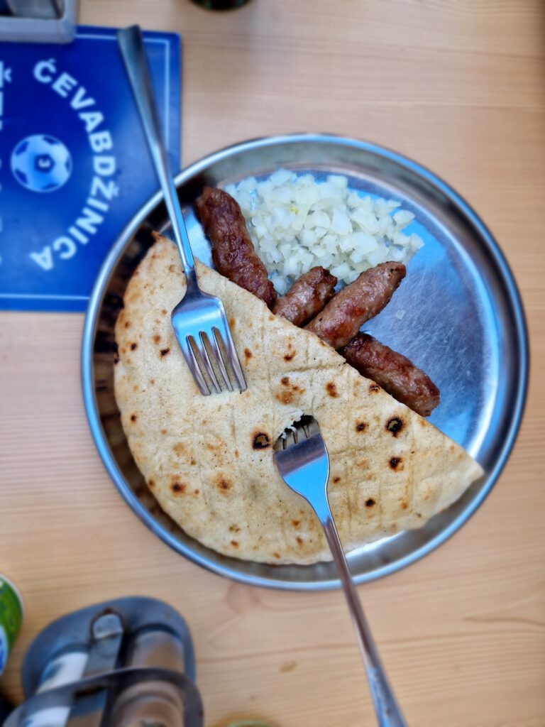 Vor allem in Griechenland gab es häufiger auch ein breiteres Angebot: andere Gemüsesorten zum Beispiel serviert als „gekochter Salat“, verschiedene Zubereitungsarten von Fetakäse und gegrillte Austernpilze. Da wir keine „echten“ Vegetarier sind, gab es auch das ein oder andere Mal ein Moussaka für uns oder Fisch für Christian und in Bosnien und Herzogowina testeten wir die berühmten Cevapi (super fettig, zwar durchaus lecker aber nach so langer Fleischlosigkeit auch etwas gewöhnungsbedürftig und am Ende nicht gerade spektakulär).
