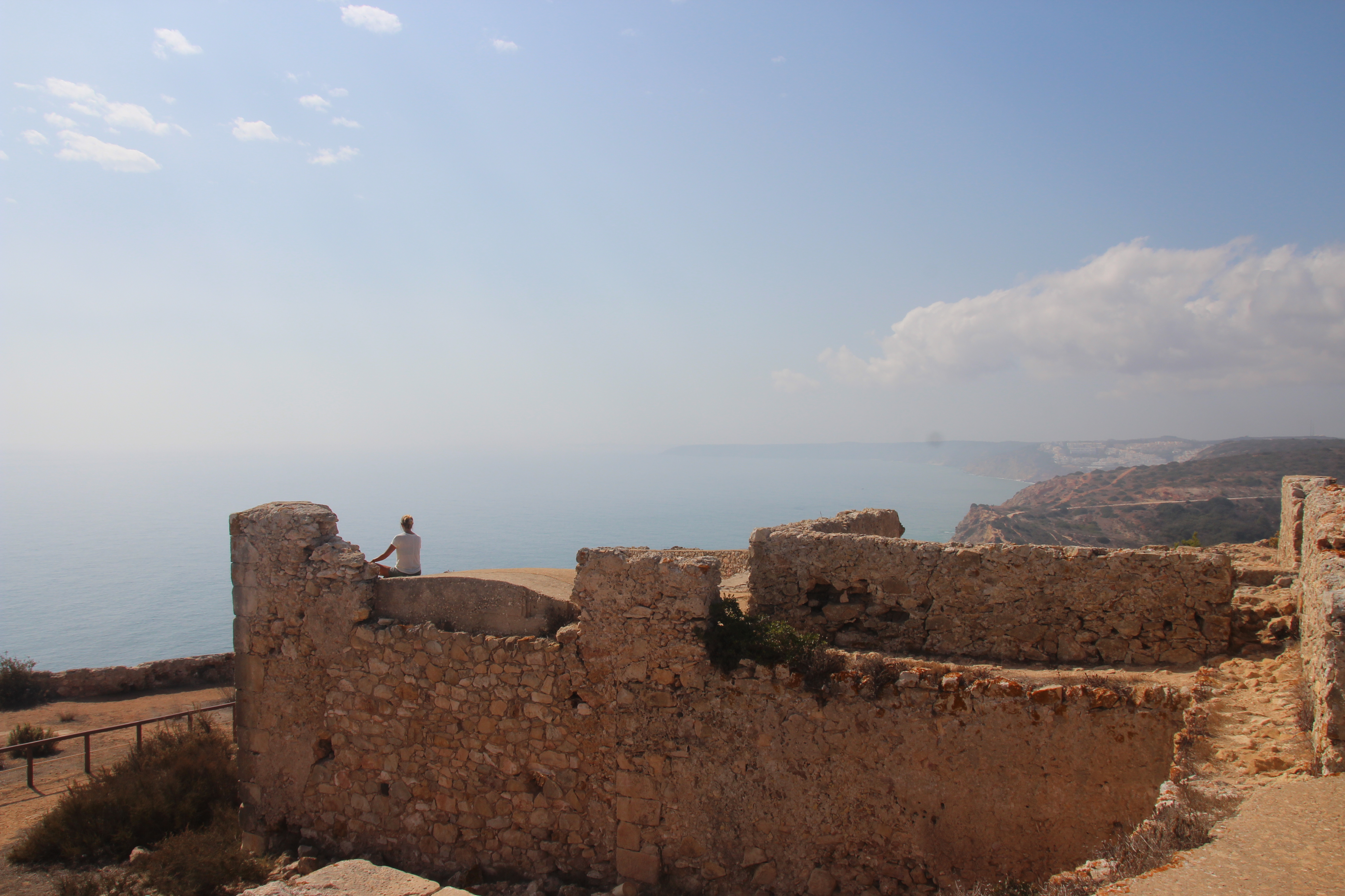 Nachdem wir uns von Gunnell und Familie verabschiedet hatten, fuhren wir zum Fort de Almadena. Das Fort liegt direkt auf einer Klippe und stammt aus maurischer Zeit. Oben angekommen merkte ich sofort, dass dies ein Ort war, der mir gefällt. Wir packten ein Picknick zusammen und kletterten auf das Dach des Forts. Zwar war man auch hier mal wieder nicht alleine, aber im Vergleich zu anderen Plätzen an der Algarve war es geradezu einsam. Wir genossen unseren Mittagsimbiss bei herrlichem Sonnenschein und einem Traumblick über die Küste und das Meer. Anschließend machte ich es mir mit einem Buch gemütlich, während Christain auf Fototour ging.
