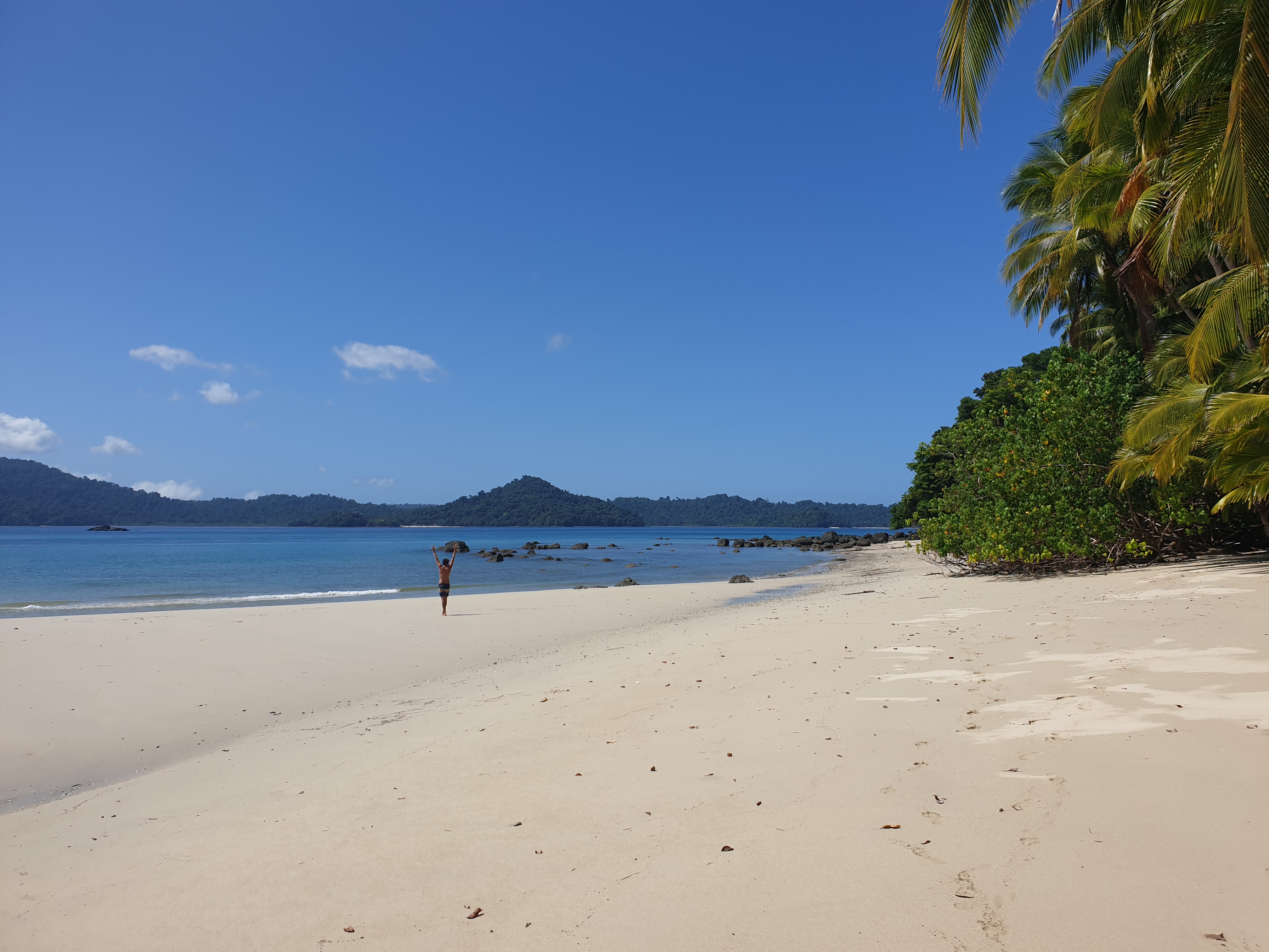 Von Santa Catalina aus, kann man den Nationalpark Isla de Coiba (eine ehemalige Gefängnisinsel) erreichen. Der Nationalpark ist vor allem für seine Unterwasserwelt bekannt. Daher buchten wir für Montag einen Schnorchelausflug. 1,5 Stunden fuhren wir mit einem kleinen Boot, ehe wir den ersten Schnorchelspot erreichten. Unterwegs entdeckte unser Kapitän Delfine im Wasser und wir fuhren hin und beobachteten sie eine Weile. Man könnte ja denken, dass wir mittlerweile verwöhnt sind, und so ein Erlebnis nicht mehr zu schätzen wissen, aber es ist einfach nur toll und ich kriege jedes Mal eine Gänsehaut, wenn man das Glück hat, diese wunderschönen Tieren zu sehen. Wir sollten beim Schnorcheln im Wasser nahe beim Guide bleiben und umrundeten gemeinsam mit ihm eine kleine Insel. Es gab auch tatsächlich viele Fische und Korallen zu sehen. Leider war der Guide allerdings ziemlich schnell unterwegs und die Strömung auch recht stark, so dass wir nicht länger an einem Ort verweilen konnten. Ich würde ja beim Schnorcheln häufig viel lieber an einer Stelle bleiben und den Fischen länger zuschauen. Wenn man eine schöne Stelle gefunden hat, ist das besser als jedes Aquarium. Da muss ich eigentlich gar nicht unbedingt weiter schwimmen. Manchmal sieht man dann natürlich auch noch tolle andere Sachen, aber gerade heute, war es eigentlich am Anfang am schönsten. Auch der zweite Schnorchelgang war schön, aber zu kurz und etwas zu hektisch. Neben zwei Weißspitzenriffhaien sahen wir etliche Schwärme verschiedenster Fische (zum Beispiel Hornhechte) und auch unseren geliebten Pufferfisch. Anschließend ging es zu einem schönen weißen Sandstrand auf eine Insel, auf der Krokodile leben. Gott sei dank liegen die tagsüber nur faul im Fluss rum und schwimmen nur nachts ins Meer raus.