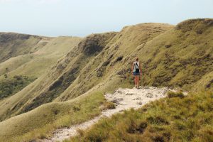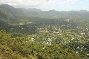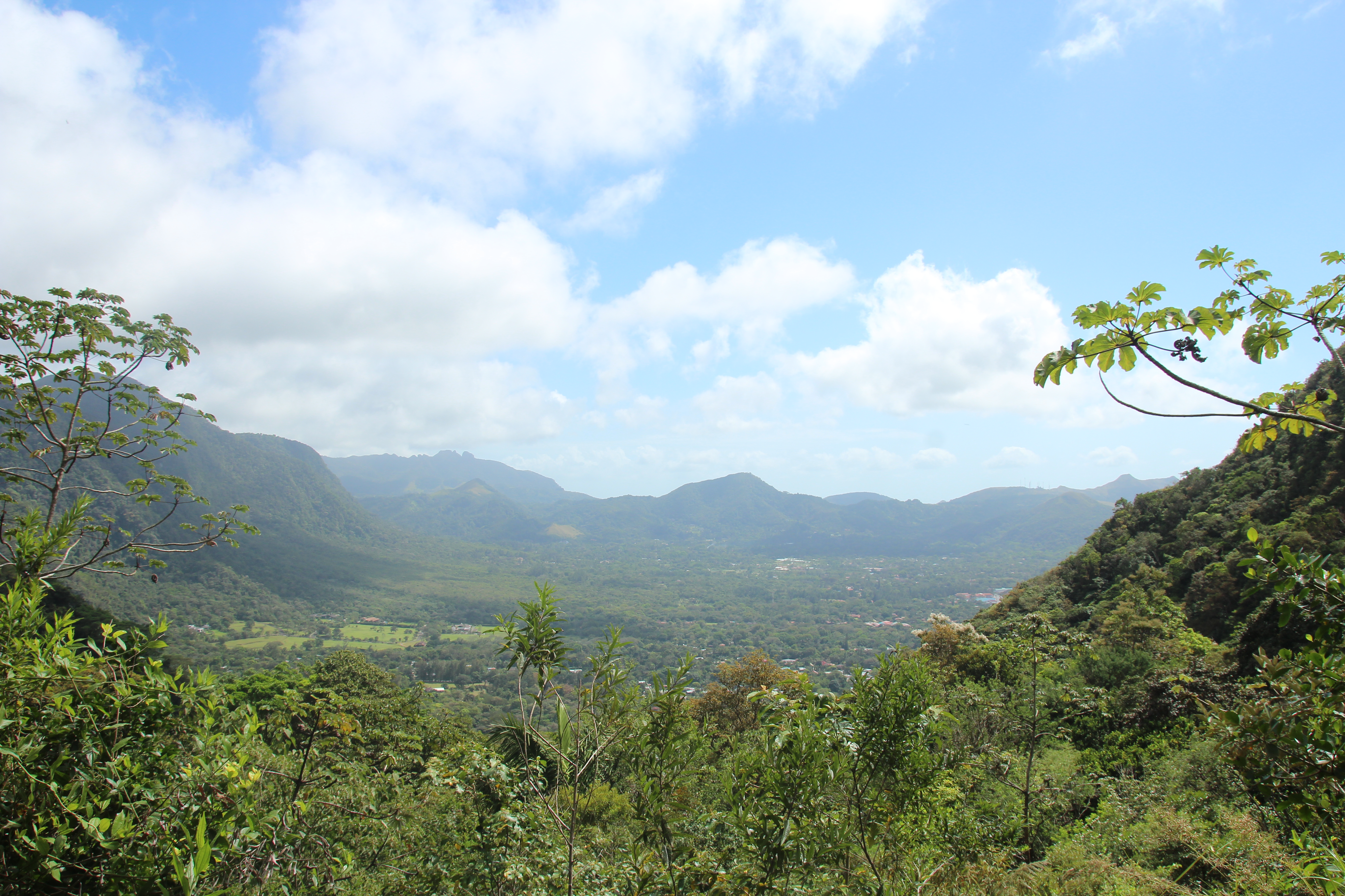 Zunächst wanderten wir eine ganze Weile durch dichten Wald, begleitet vom Zirpen irgendwelcher Insekten, das wir zunächst für Motorsägen hielten und das auch ähnlich nervig war. Irgendwann ging es steiler bergauf und der Wald lichtete sich. Plötzlich stand man auf dem baumlosen Kraterrand und konnte ins Tal hinab und auf der anderen Seite bis zum Pazifik blicken.