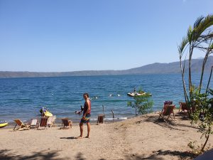 Am dritten Tag fuhren wir zur Laguna de Apoyo. Dies ist ein riesiger Vulkankratersee – super sauber und super tief. Hier verbrachten wir den Tag im Wasser planschend in der Sonne liegend und Cocktail trinkend – wie im Urlaub.