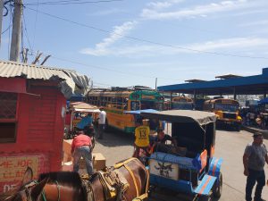 (Linda:) Am Freitag verabschiedeten wir uns schweren Herzens von der liebgewonnen Stadt und machten uns auf den Weg nach Ometepe. Schon bei der Anreise nach Granada hatten wir den Nicaraguasee mit seiner Vulkaninsel gesehen und waren begeistert von dem riesigen See, der eher an ein Meer erinnert. Mal wieder dauerte die Reise, die auf der Karte wie ein Katzensprung aussah, fast einen ganzen Tag. Es ging damit los, dass der Bus viel seltener fuhr, als wir dachten und wir somit gleich mal zwei Stunden in der sengenden Hitze des Morgens auf die Abfahrt warten mussten. Christian entschied sich, die Zeit sinnvoll zu nutzen und sich beim Barbier um die Ecke die Haare schneiden zu lassen. Der junge Mann wirkte etwas überfordert und offensichtlich war er es auch. Naja, was kann man für ca. 1€ erwarten. Christian trägt seine Frisur mit Fassung. Nachdem ich mit der Nagelschere noch ein paar abstehende Büschel gekürzt habe, fällt es nicht mehr ganz so auf.
