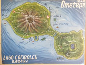 Mit dem Chickenbus ging es nach Rivas, von dort zur Fähre und dann über den See nach Ometepe. Die Insel sieht von Weitem ein bisschen aus wie Lummerland. Allerdings ist sie alles andere als klein. Tatsächlich waren wir nicht wirklich darauf vorbereitet, wie groß die Entfernungen sind. 45 Minuten dauerte die Taxifahrt zu unserer Unterkunft am anderen Ende der Insel. Dort wurden wir aber für die anstrengende Reise mehr als entschädigt. Man hatte einen wunderschöner Blick auf den See und den Vulkan „la Conception“, ein Infinitypool lud zum baden ein und unsere überaus günstige und geräumige Cabana hatte eine der besten Matratzen bisher. Wir genossen den Sonnenuntergang mit Cocktails (jaja, schon wieder) am Pool und gratulierten uns zu dieser hervorragenden Wahl.