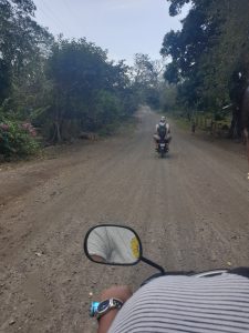 An unserem vorletzten Tag auf der Insel machten wir eine Wanderung zu einem Wasserfall. Um diese Jahreszeit führt der Fluss zwar nicht gerade viel Wasser, aber die Fallhöhe ist dennoch beeindruckend. Zwei Mitarbeiter/Familienmitglieder des Hotels brachten uns mit Motorrollern zum Ausgangspunkt der Wanderung. Das ist eine tolle Art der Fortbewegung, die wir ja auch schon in Vietnam schätzen gelernt haben – man sitzt hinten drauf und kann trotzdem die Landschaft und das Leben der Menschen viel unmittelbarer beobachten, als im Auto oder Bus. Bei der Wanderung mussten wir feststellen, dass wir ganz schön aus der Form sind. Wir schafften es nur so gerade hin und zurück in den drei Stunden, bis wir wieder abgeholt werden sollten. Oben angekommen blieb aber immerhin noch Zeit für eine kurze Abkühlung im Wasserfall. Die beste Nachricht des Tages ist aber vielleicht, dass mein Knie die doch recht steile Wanderung ohne Probleme überstanden hat.