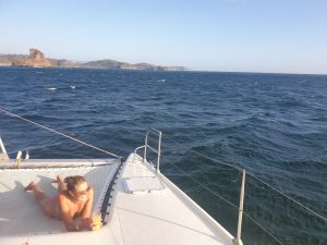 In Bocas del Toro wird am „Freaky Friday“ ordentlich gefeiert und hier in San Juan haben wir den „Sunday Funday“ knapp verpasst, dafür machten wir uns am Dienstag auf, zu unsererem ganz persönlichen „Tuesday Cruiseday“ auf einem Katamaran. Wir hatten mal wieder richtig Glück: Während das andere Boot, das zeitgleich ablegte, mit 35 Leuten gerammelt voll war, waren wir auf unserem Segelboot lediglich zu siebt plus drei Crewmitglieder. Der Kapitän steuerte das Boot, der 2. Kapitän kümmerte sich um das Segel und Amanda versorgte uns mit Mai Tais (jaja, schon wieder Cocktails, wir merken es selber 😉 ). Wir lagen vorne über dem Wasser auf einem Netz und genossen die Sonne, das Meer und den Wind, ein Delfin tauchte auch noch neben dem Boot auf – perfekt!