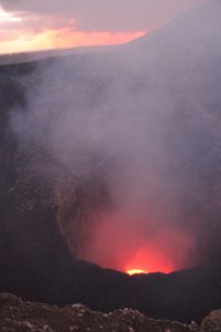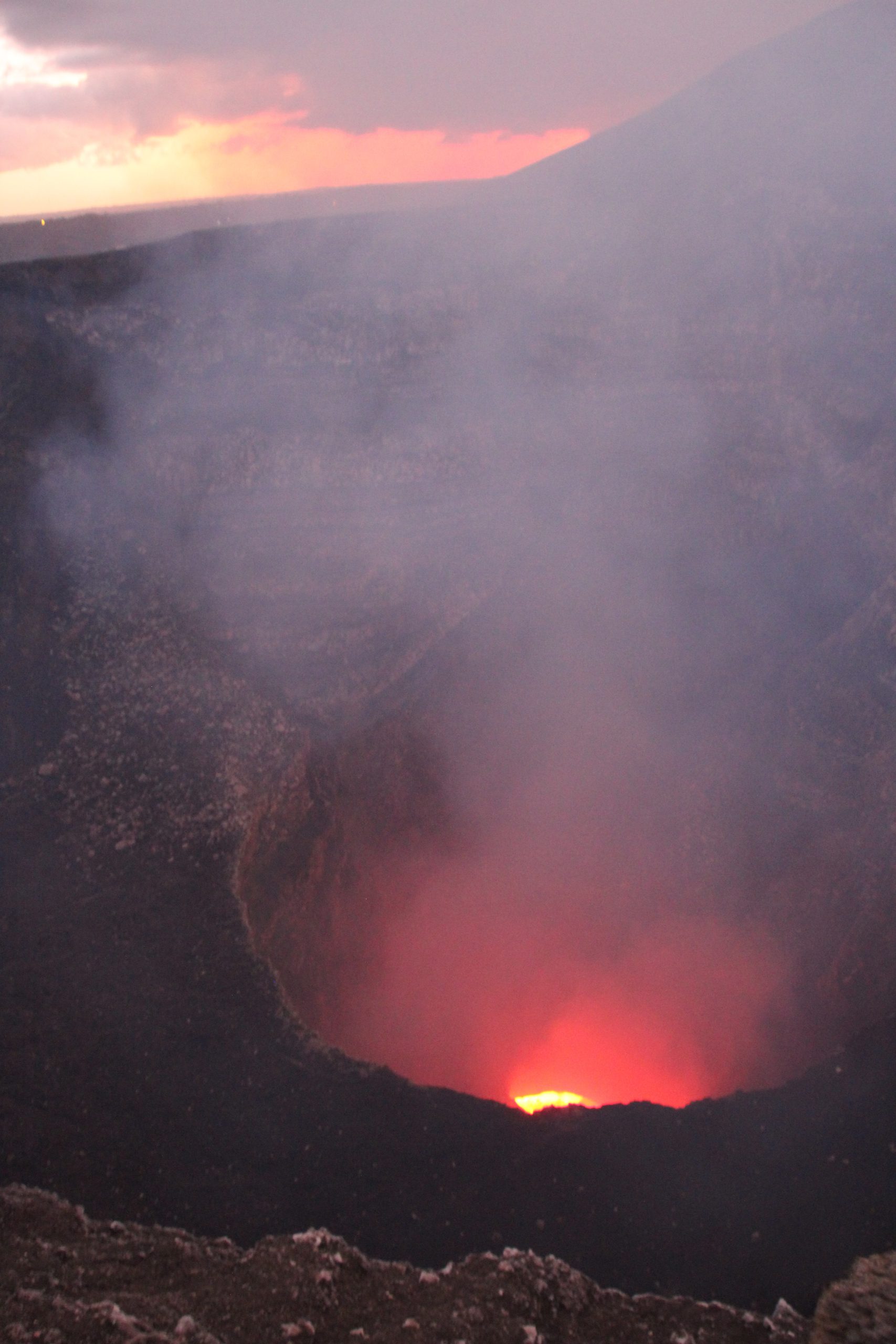 Unser erster Ausflug war auch gleich der beeindruckendste. Wir buchten eine Abend-Tour zum Masaya Vulkan. Das Besondere bei diesem Vulkan ist, dass man von oben in den Krater schauen und unten die Lava brodeln sehen kann. Ein unfassbares (!) Naturschauspiel. Man konnte genau sehen, wie die Lava wellengleich vor sich hinschwappte und sogar die Lavabrandung war am Kraterrand zu hören. Wir kamen uns angesichts dieser Urgewalt plötzlich ganz klein vor. Da der Wind günstig stand und die Schwefeldämpfe von uns weg blies, durften wir dem Schauspiel über 30 Minuten zusehen – es wurde einfach nicht langweilig!