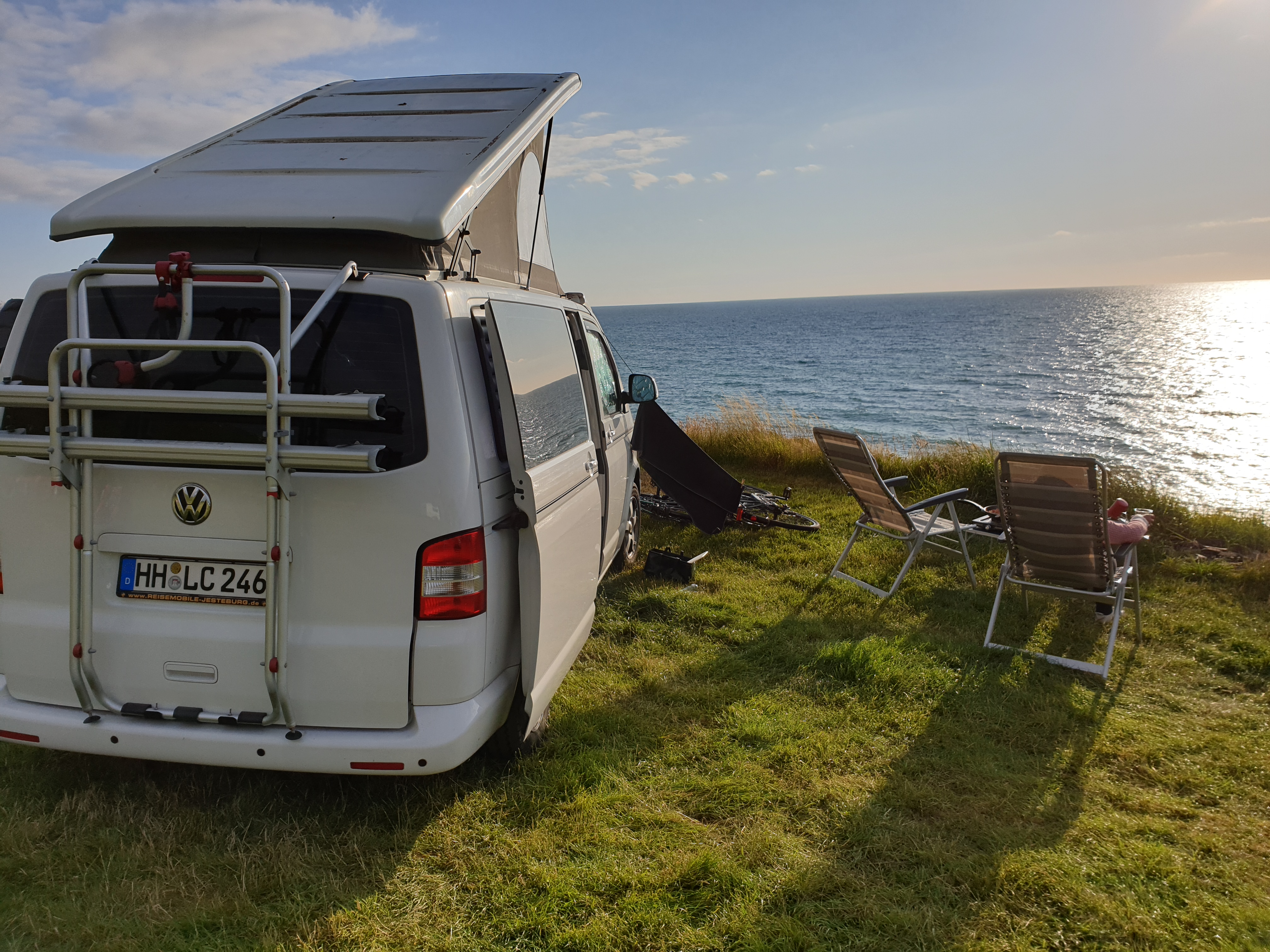Zu Hause auf dem Campingplatz zeigte sich dann wieder die Sonne und wir genossen ein leckeres Abendessen mit Blick aufs Meer mit anschließendem Sonnenuntergang.