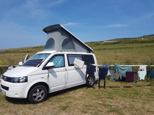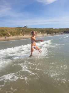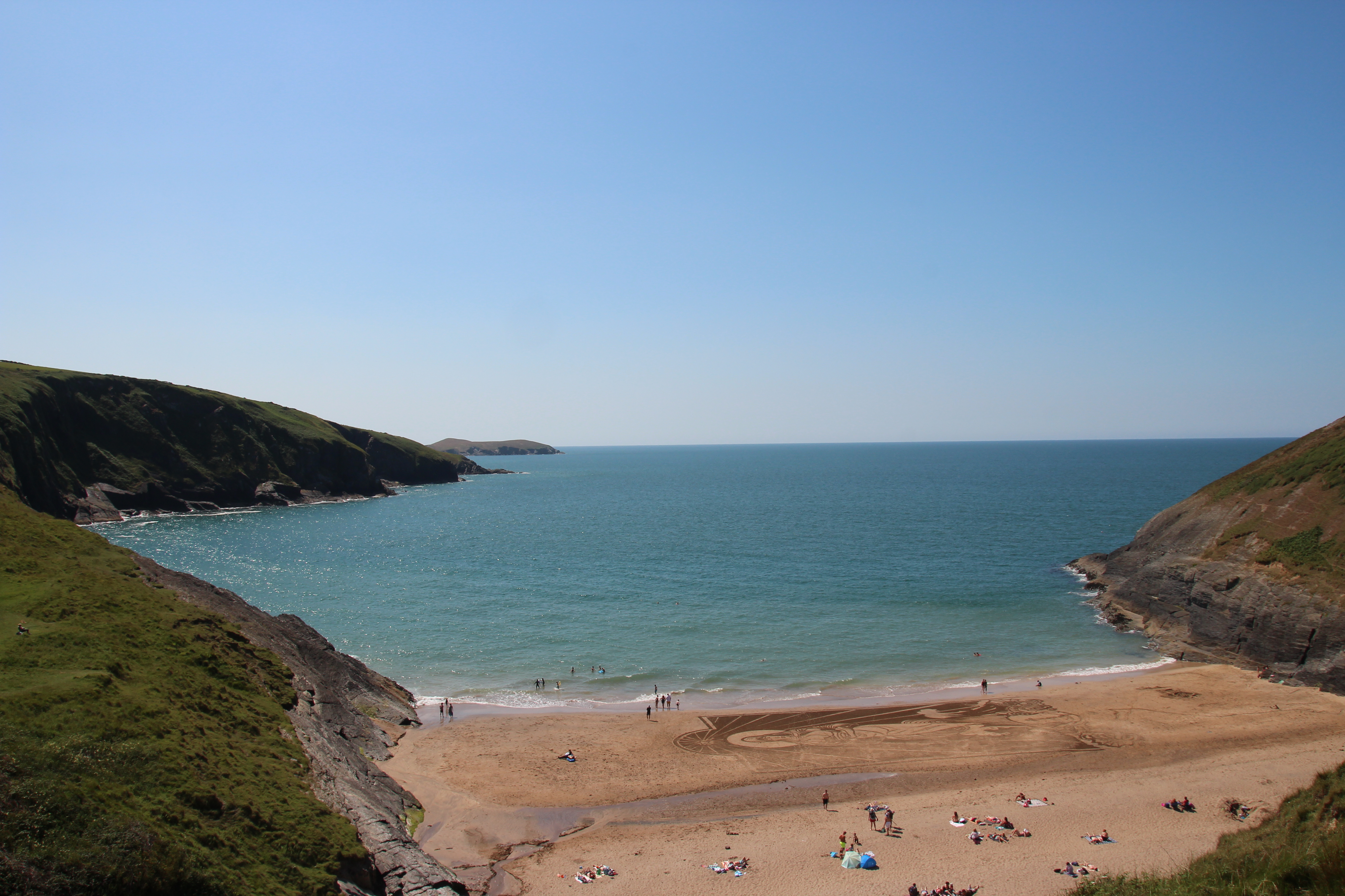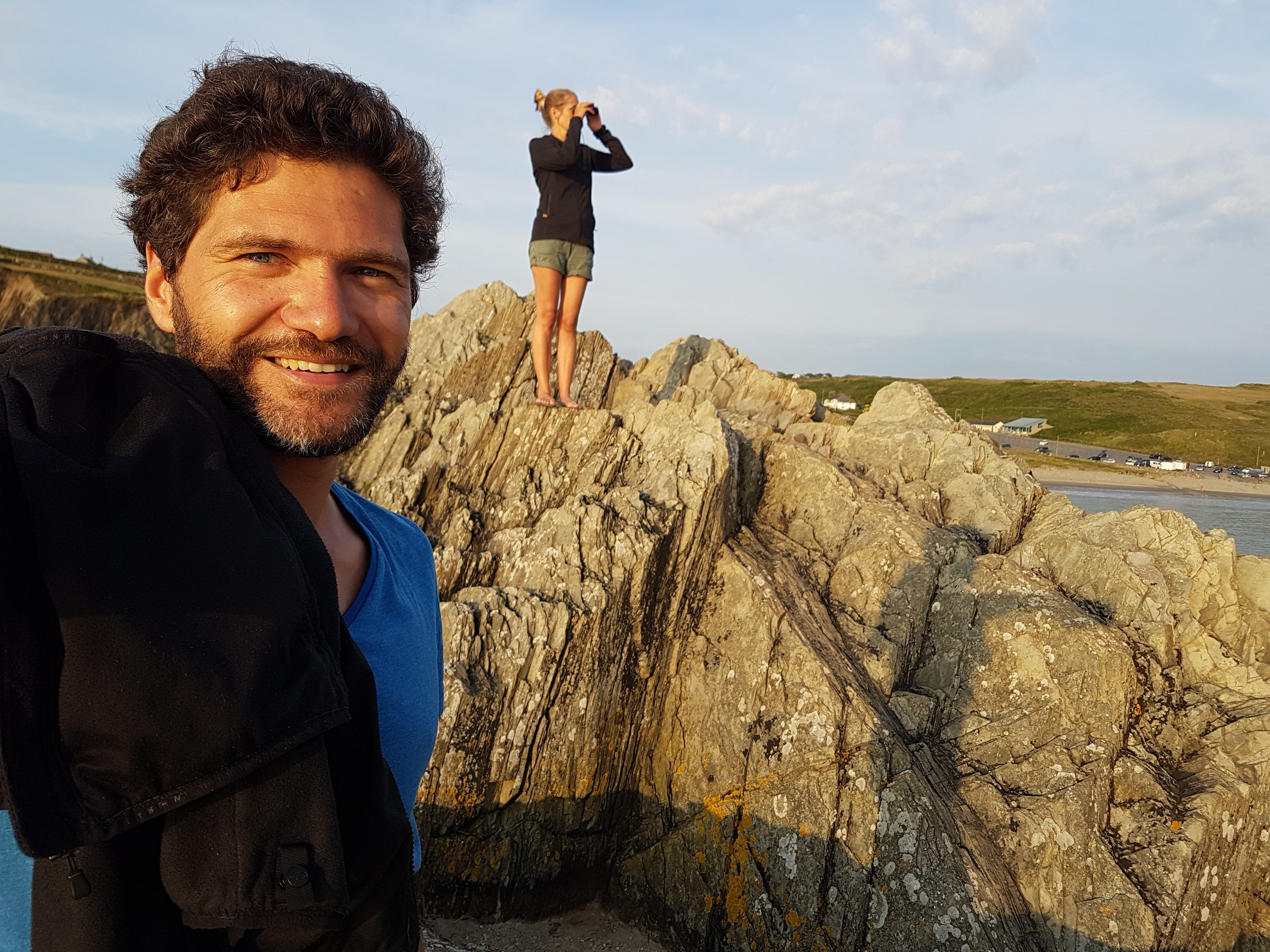 Während ich Sonntag früh nichtsahnend beim Abwasch einen Plausch mit einer netten Lady aus Liverpool hielt, entdeckte Christian dann doch noch Delfine im Meer. Nach dem Packen ging es weiter gen Süden nach New Quay und weiter an den wunderschönen Strand von Mwnt. Die Nacht verbrachten wir in Cardigan – ob hier auch die berühmten Strickjäckchen herstammen? Keine Ahnung…
