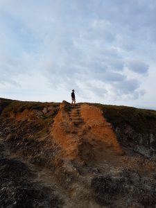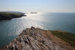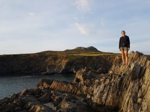 Wir sind gerade mal knapp eine Woche in Wales aber schon total verliebt in das Land. Gleich die erste Wanderung am „Reisetag“ hatte uns schon super gut gefallen. Nachdem wir den ersten Schlechtwettervormittag zum Schreiben des Blogeintrags genutzt hatten, machten wir einen kleinen Spaziergang am einsamen Steinstrand direkt vor dem Campingplatz. Delfine sahen wir zwar nicht, aber kurz bevor wir umkehren wollten, entdeckte ich (Linda) erst eine und dann zwei Kegelrobben im Meer.