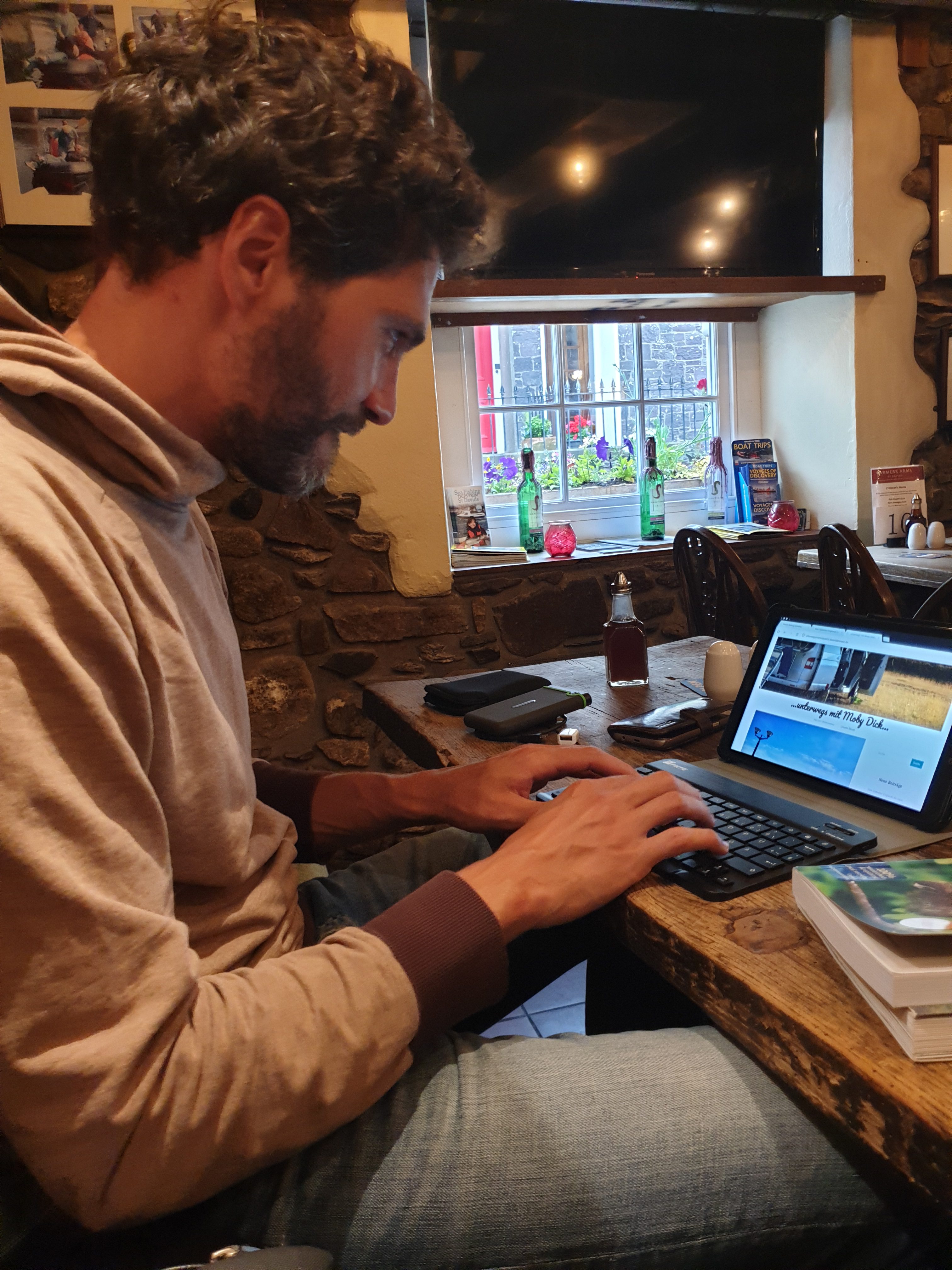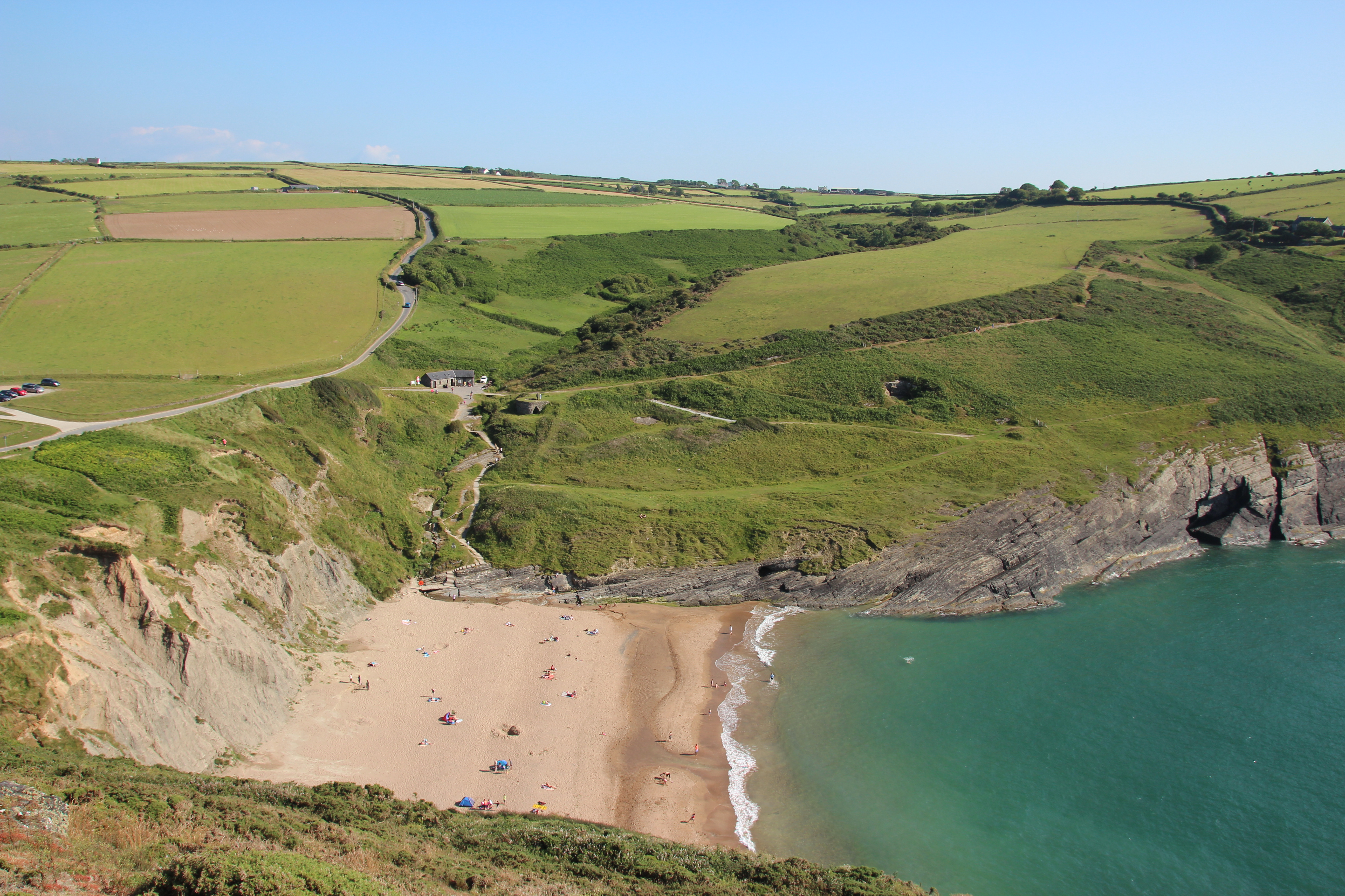 Seit Montag sind wir am Whitsands Bay – St. Davids und genießen den Strand und das ziemlich kalte Meer. Vielleicht legen wir uns ja doch noch einen Neo zu – dann halten wir es endlich auch länger als wenige Augenblicke aus. Heute gings zu einer kleinen Wanderung die Küste entlang und dann mit den Rädern ins nahegelegene St. Davids – Großbritanniens kleinste Stadt. Hier sitzten wir im Pub Farmers Arms und aktualisieren bei einem Pint Carling unseren Blog.