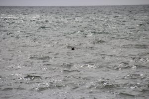 Eine Weile waren wir nicht sicher, wer hier eigentlich wen beobachtet. Eine der Robben tauchte immer wieder auf und streckte den Kopf in unsere Richtung. Als wir uns dann auf den Rückweg am Strand entlang machten war es eindeutig: die Robbe hatte uns ins Visier genommen. Sie folgte uns ganz eindeutig und blickte dabei immer wieder in unsere Richtung. Irgendwann wurde es aber auch ihr zu langweilig und sie verschwand auf Nimmerwiedersehen im Meer.