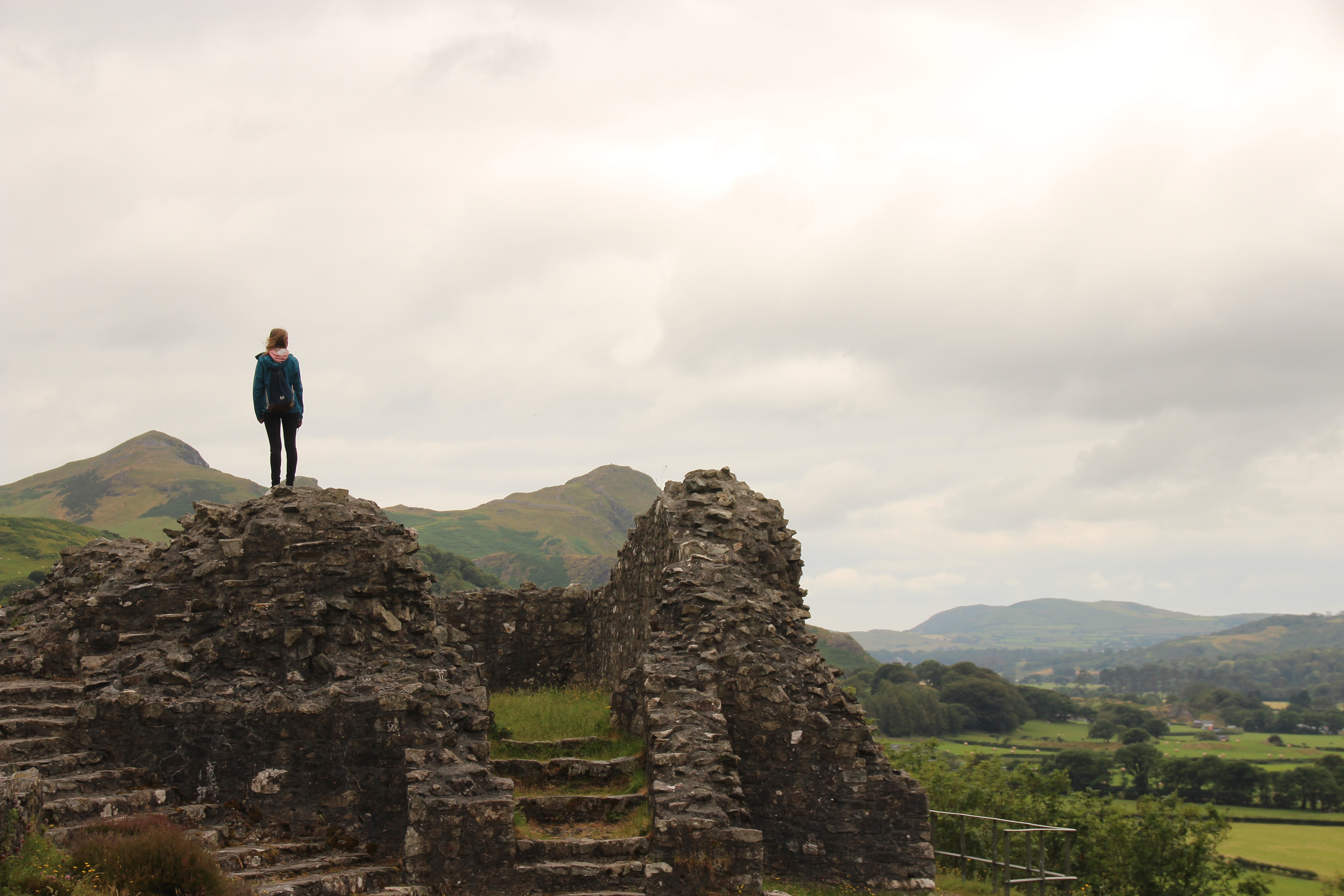 Am Samstag machten wir einen Ausflugstag. Mit dem Auto fuhren wir mehrere Empfehlungen aus dem „Wild Guide Wales“-Reiseführer an. Den Anfang machte eine Burgruine aus dem 13. Jahrhundert (Castell y bere) mit einem beeindruckenden Blick über die Landschaft.