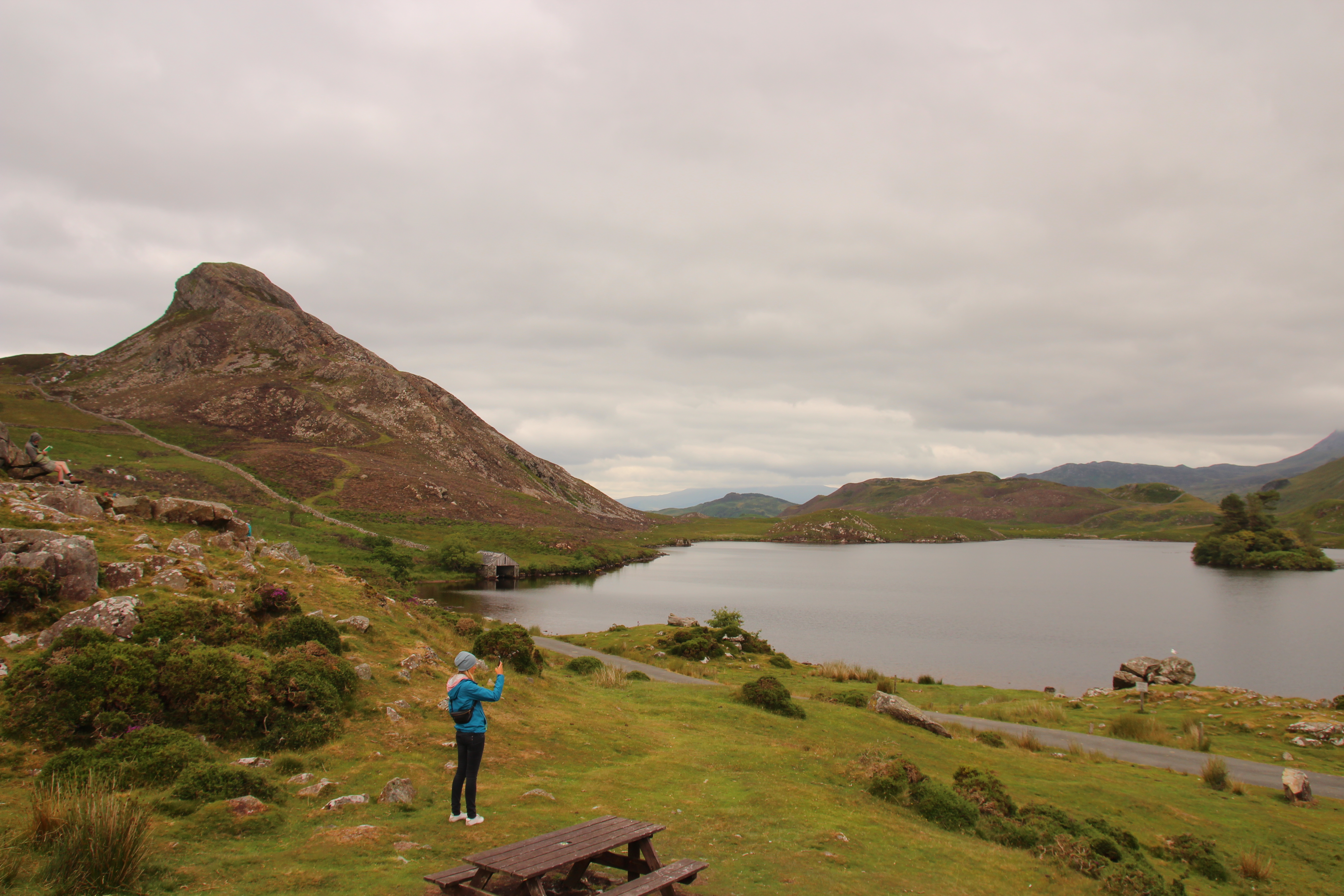 Weiter ging es nach Dolgellau wo es in einem urigen Cafe das erste orignial English – äh Welsh Breakfast für uns gab. Anschließend verfuhren wir uns ein bisschen und landeten, statt an einem Bachlauf mit Wasserfällen, auf einem Hochplateau mit einem wunderschönen See. Vor allem die Stille dort oben beeindruckte mich total. Es war vielleicht eher die Abwesenheit von Lärm, als wirkliche Stille. Außer Vogelgezwitscher und einem gelegentlichen Schafsblöken war praktisch nichts zu hören. Ich hätte dort gut auch etwas länger verweilen können. Für die, die es interessiert: Zwei ornithologische Beobachtungen seien noch erwähnt: ein Schwarzkehlchen (von denen wir mittlerweile schon mehrere gesehen haben) und das Weibchen eines Steinschmätzers.