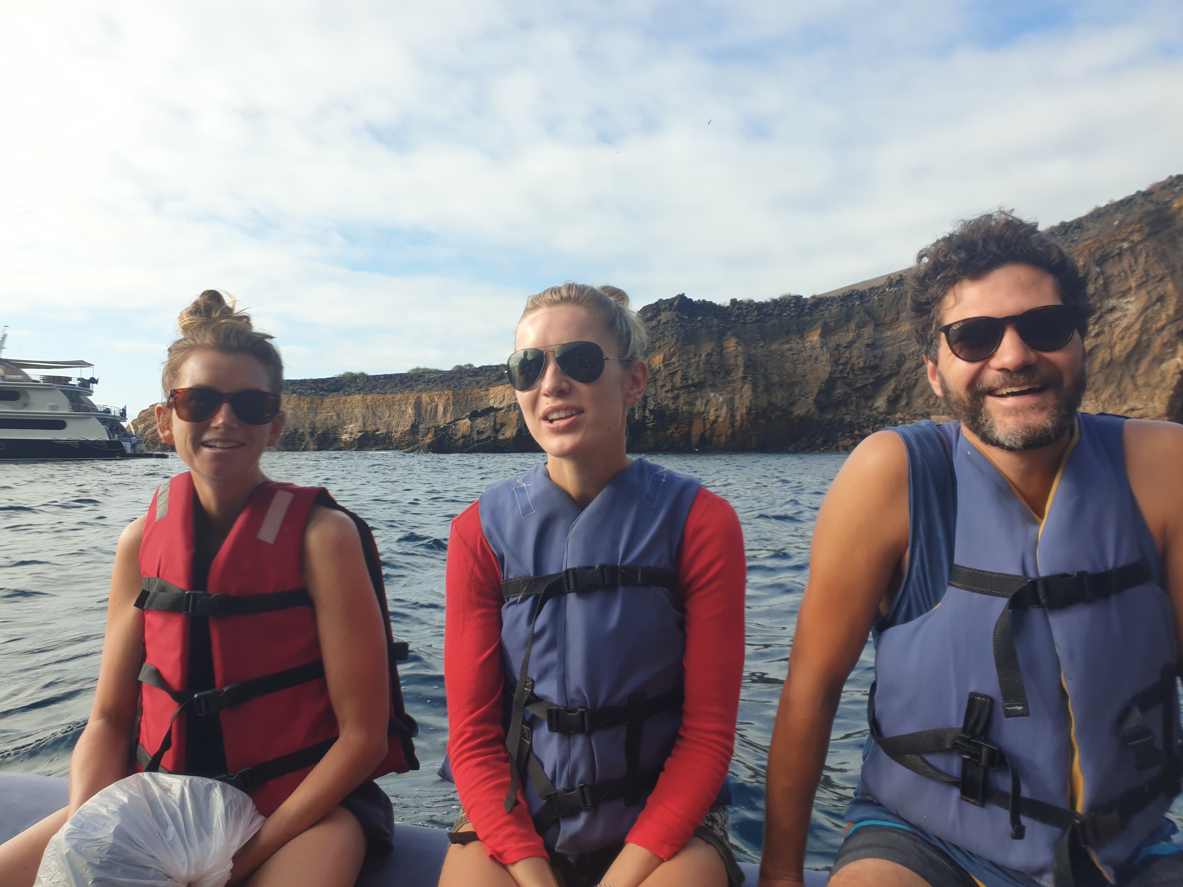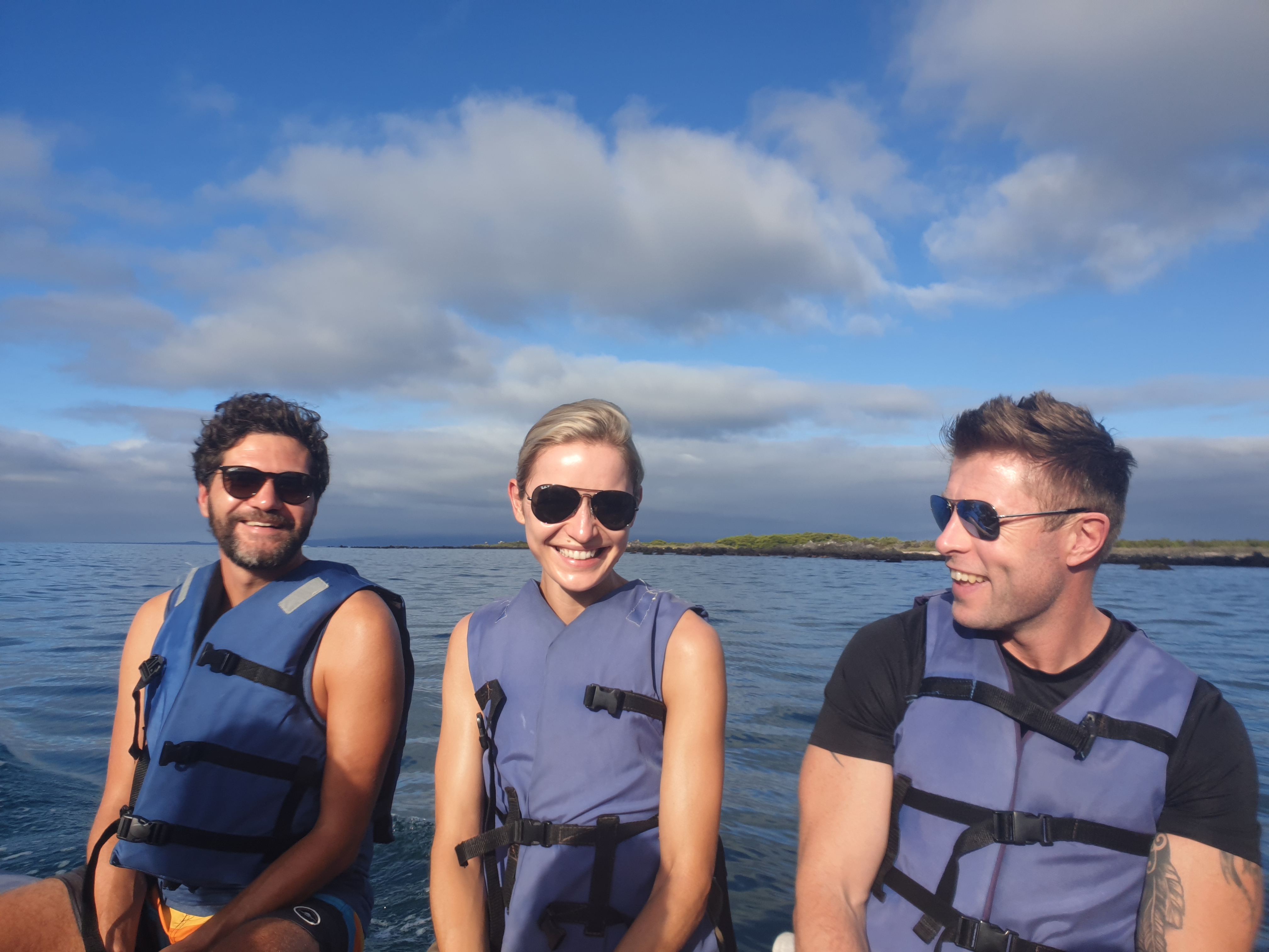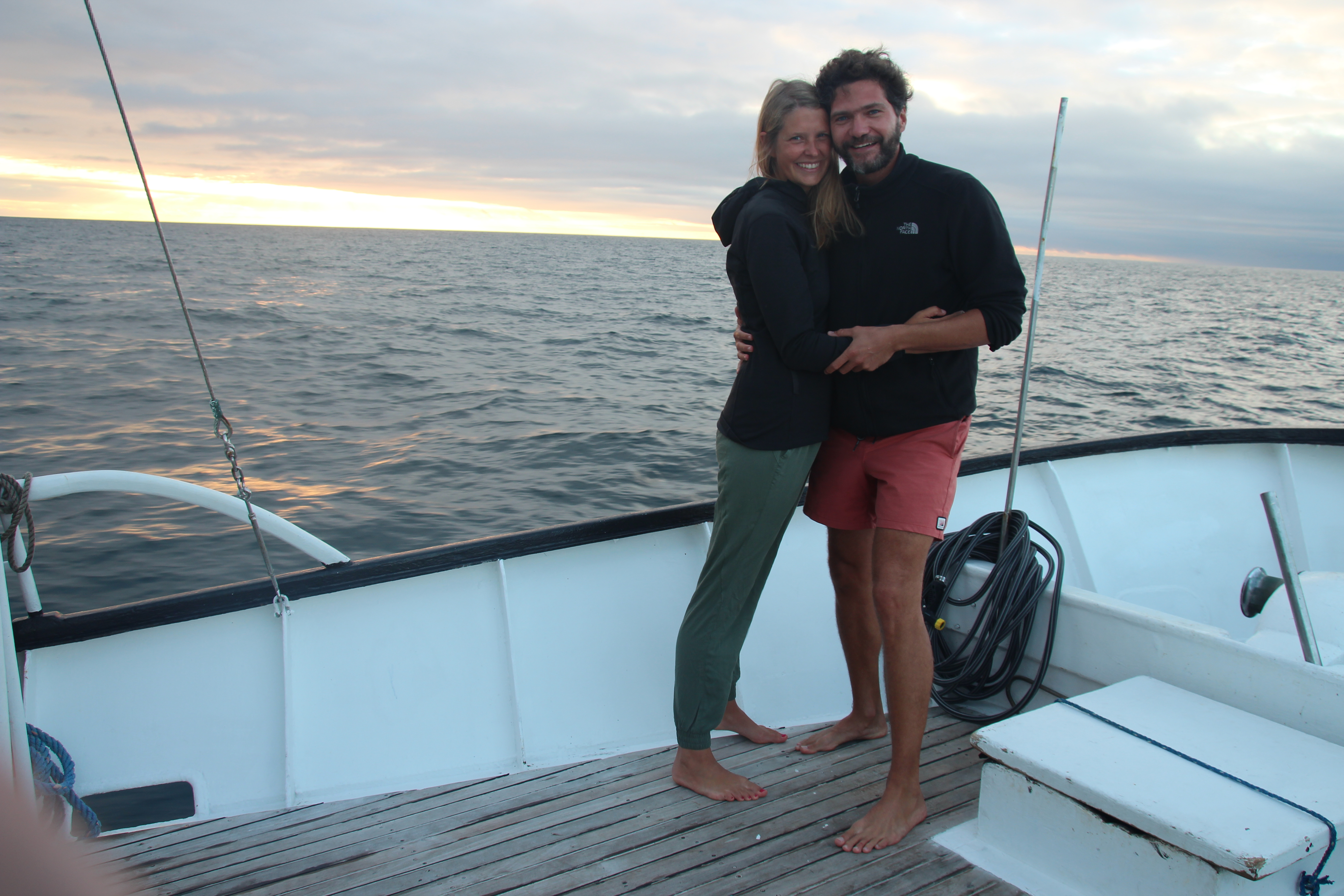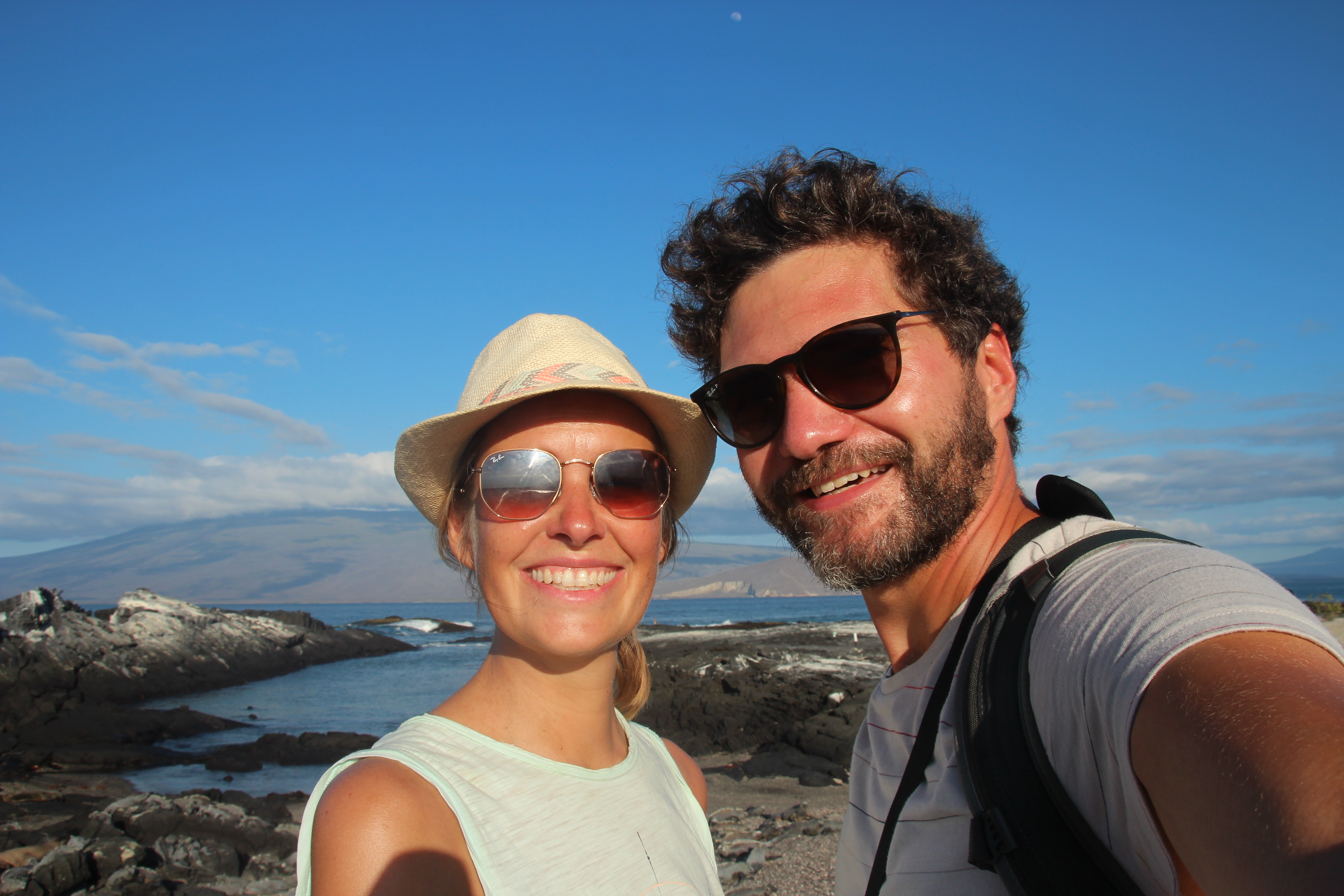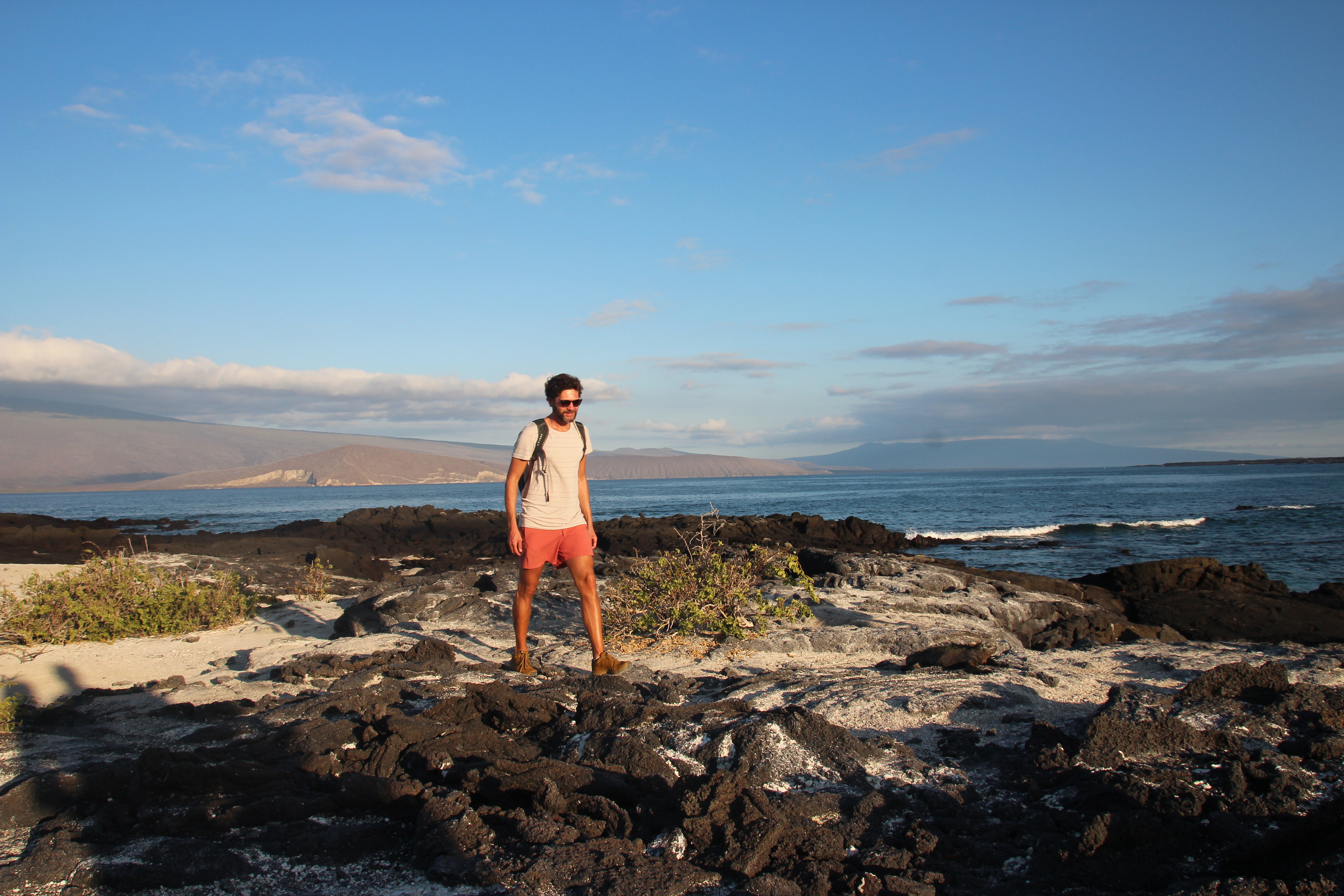 Während wir schliefen, legte das Schiff viele Kilometer zurück und so fanden wir uns am nächsten Morgen auf der anderen Seite der großen Insel Isabela wieder. Wir genossen den Sonnenaufgang auf Deck und hielten dabei vergeblich nach Walen Ausschau. Einige Fregattvögel flogen (eigentlich ständig) ums Boot herum und landeten auf dem Mast, um sich ein Stück mitnehmen zu lassen.