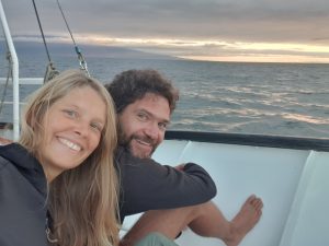 Wir haben total Glück gehabt, denn wir waren tatsächlich nur zu siebt auf dem Schiff, das für bis zu 16 Personen ausgelegt ist. Zugegebenermaßen wäre es mit 16 auch echt eng gewesen. Dazu sind die 5 anderen richtig sympathisch und es herrschte eine angenehme Atmosphäre. Alle sind ungefähr in unserem Alter. Ein Pärchen kommt aus London, eines aus Dublin und die fünfte ursprünglich aus Holland, lebt aber in Neuseeland.
