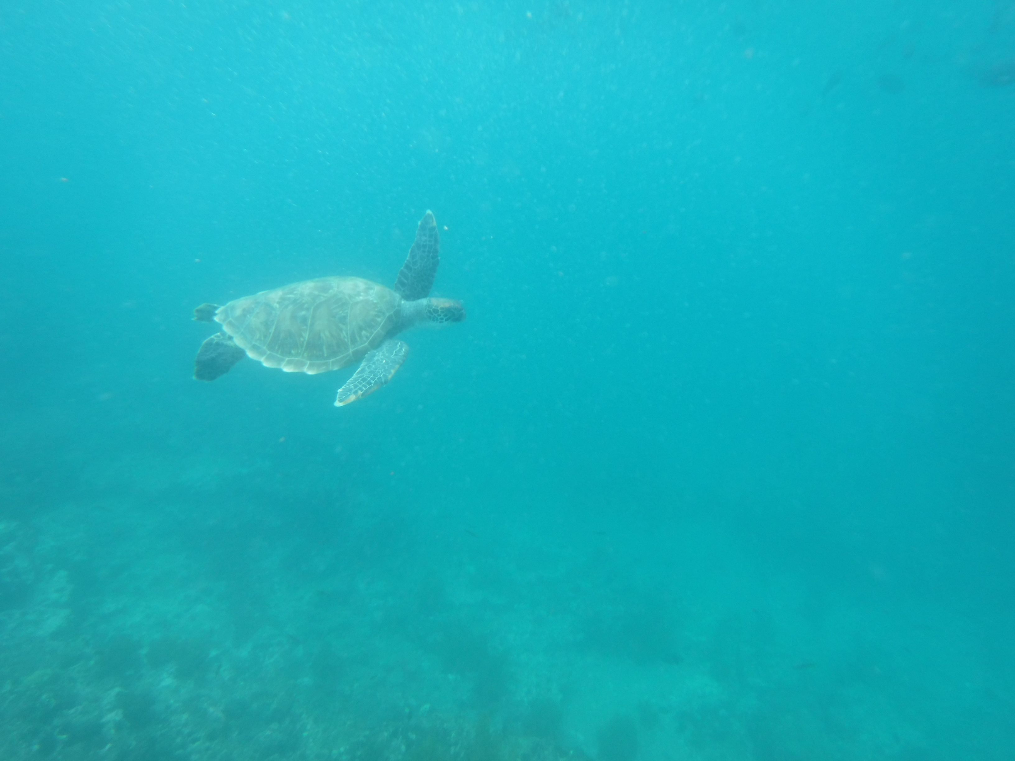 Anschließend ging es mit unserer Lieblingsaktivität weiter: Schnorcheln. Ich (Linda) finde es einfach so beeindruckend, was für eine komplett andere, wunderschöne Welt sich einem eröffnet, wenn man einfach nur auf dem Wasser treibt und den Blick mit der Taucherbrille nach unten richtet. Besonders die Meeresschildkröten haben es mir angetan. Ich könnte ihnen stundenlang dabei zusehen, wie sie schwerelos im Wasser schweben und sich von den Wellen hin und her schaukeln lassen oder genüsslich an einer Wasserpflanze knabbern, während kleine bunte Fische um sie herum flitzen.