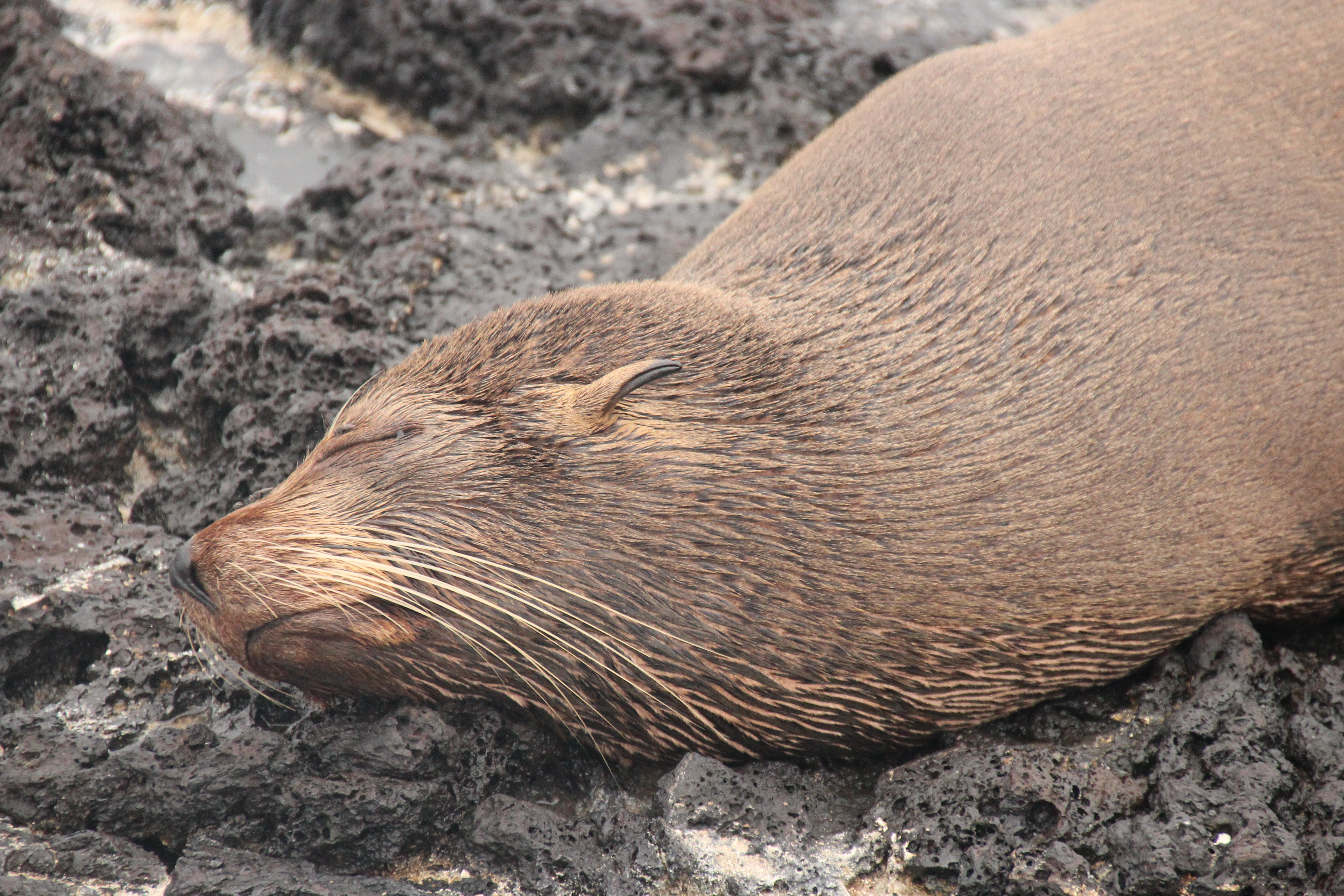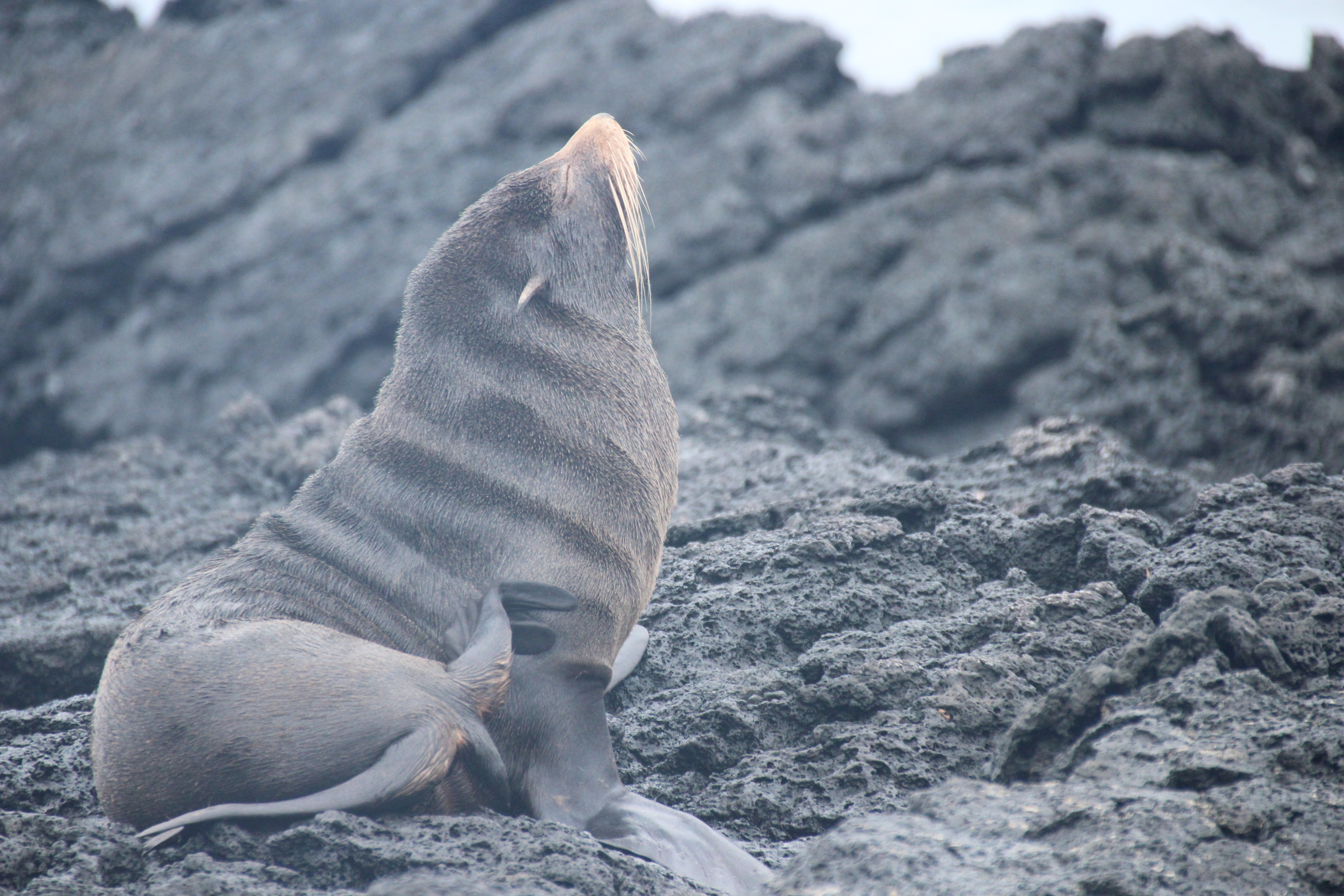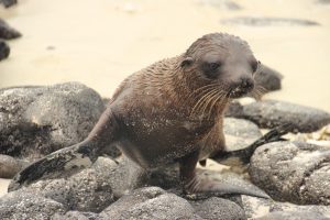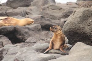 Nach einer langen aber sehr ruhigen Fahrt über Nacht mussten wir heute etwas früher aufstehen, denn wir wollten als erstes am Puerto Egas auf Santiago Island an Land gehen. Dort gab es dann neben der Galapagostaube und vielen Finken die scheueren und selteneren Pelzseelöwen zu sehen. Richtig nah kamen wir aber mal wieder vor allem den großen Seelöwen. Leider fing es an, ein wenig zu regnen, so dass wir aufs Schnorcheln vom Strand aus verzichteten.