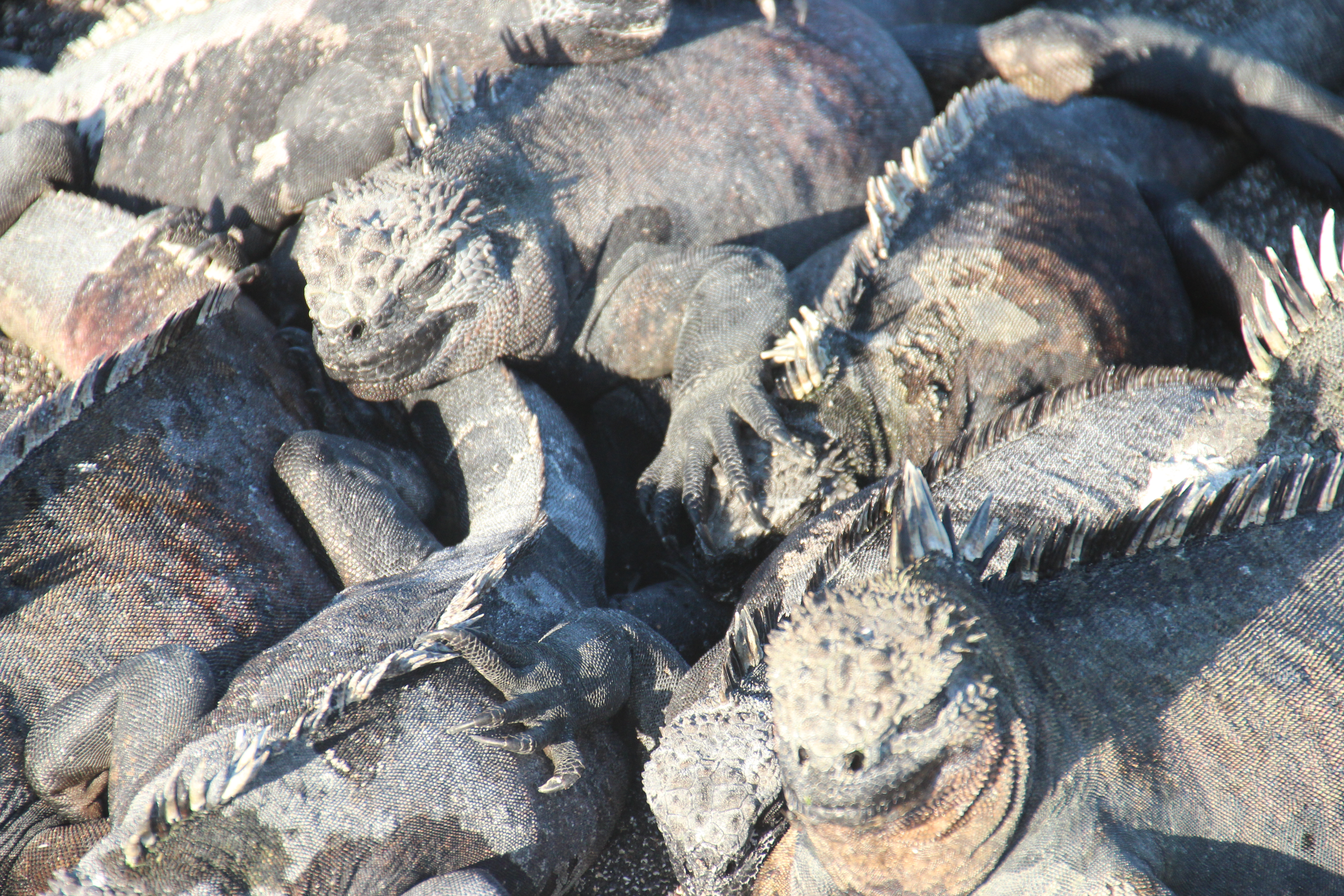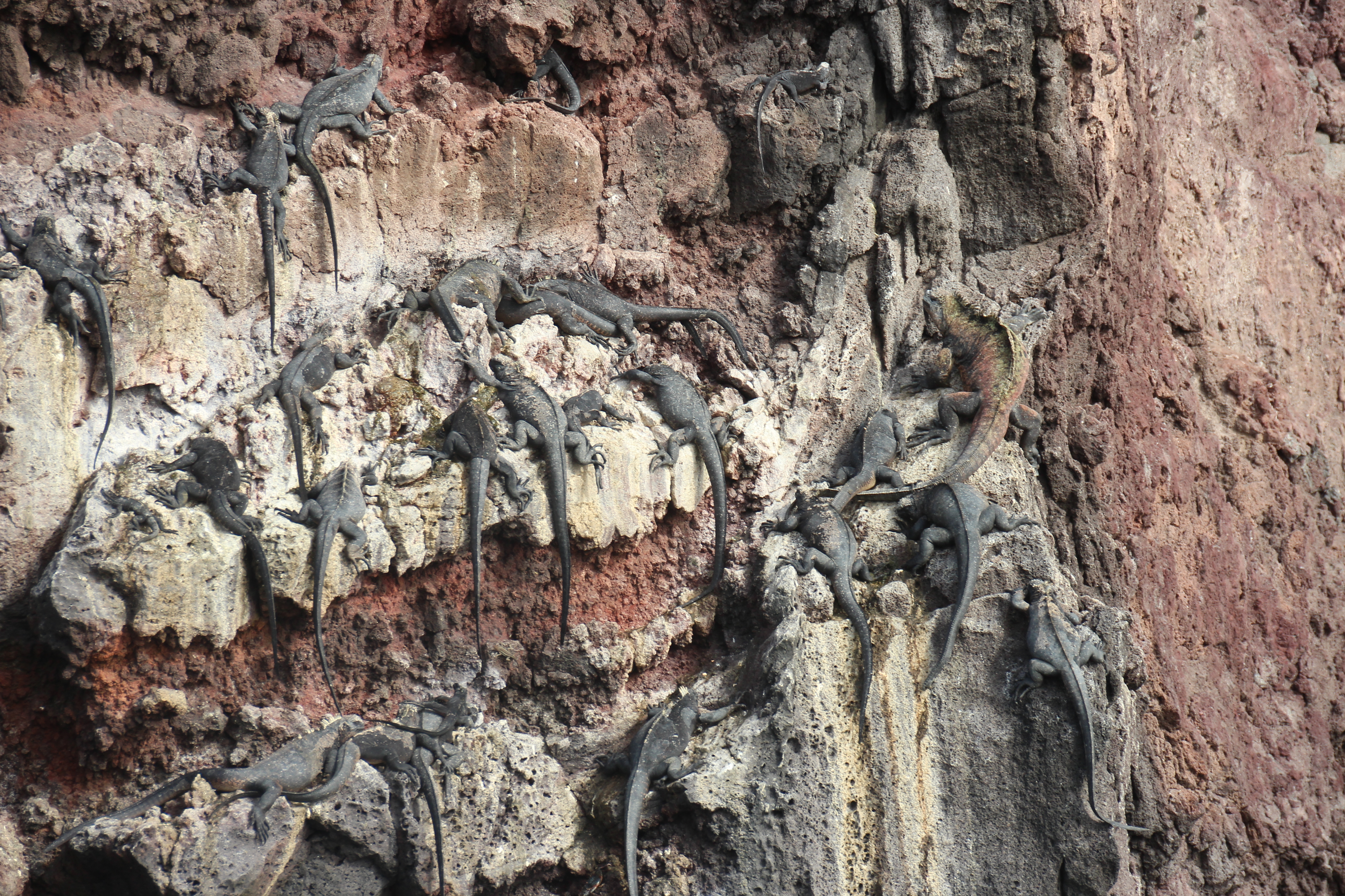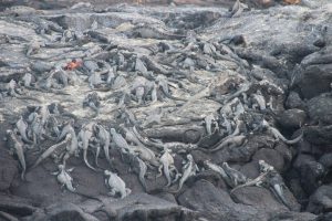 Direkt im Anschluss machten wir uns auf zu einem Landspaziergang am Punta Espinosa auf Fernandina Island. Die Insel ist bevölkert von gefühlt tausenden von Meeresleguanen. Sie lagen überall neben und aufeinander herum und tankten nach der anstrengenden Jagd im Wasser Sonnenwärme für die Nacht. Außerdem gab es natürlich wieder Seelöwen zu sehen und zu hören. Ein Galapagosbussard verspeiste in aller Seelenruhe einen Leguan, während alle Touristen sich für das perfekte Foto um ihn scharten.