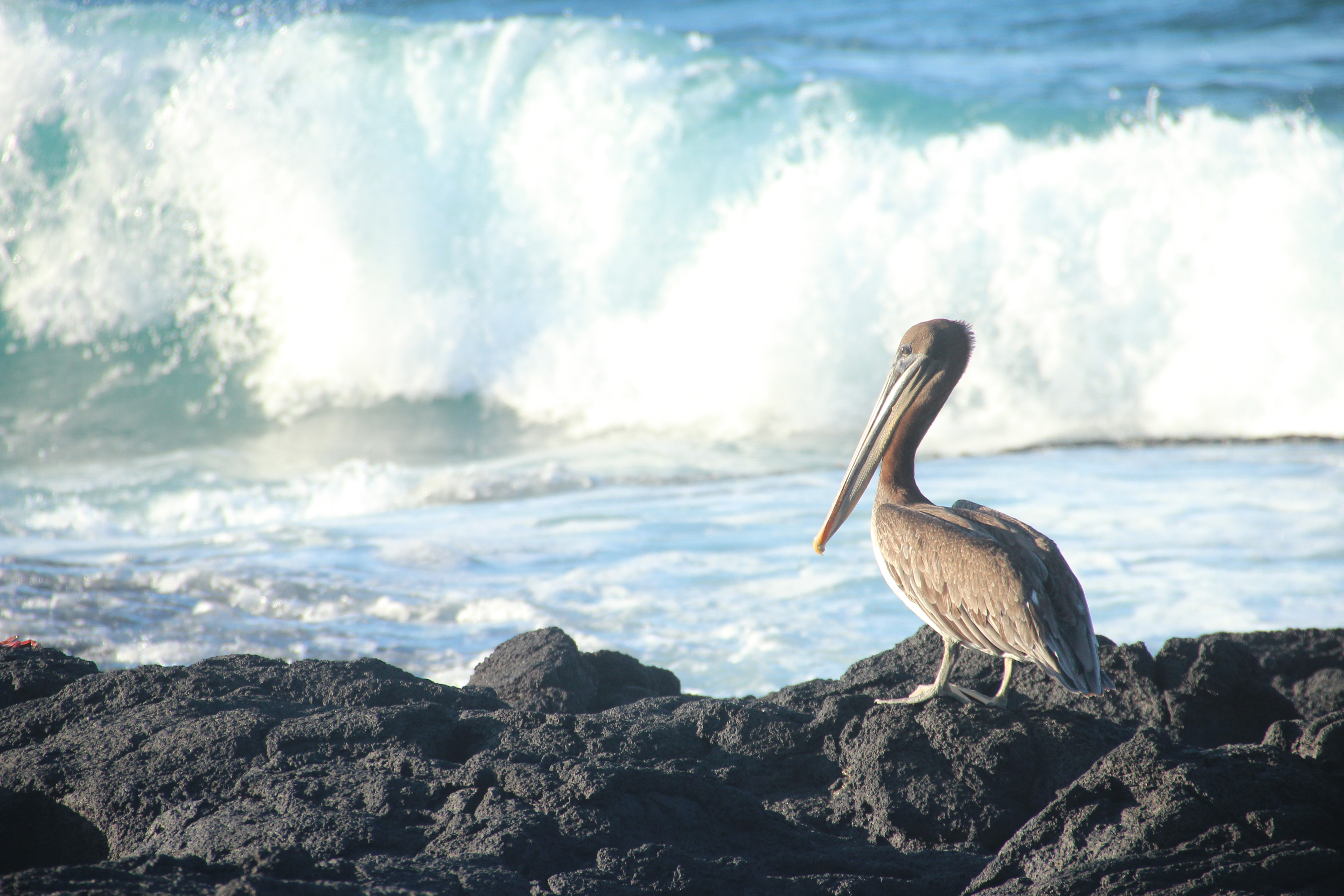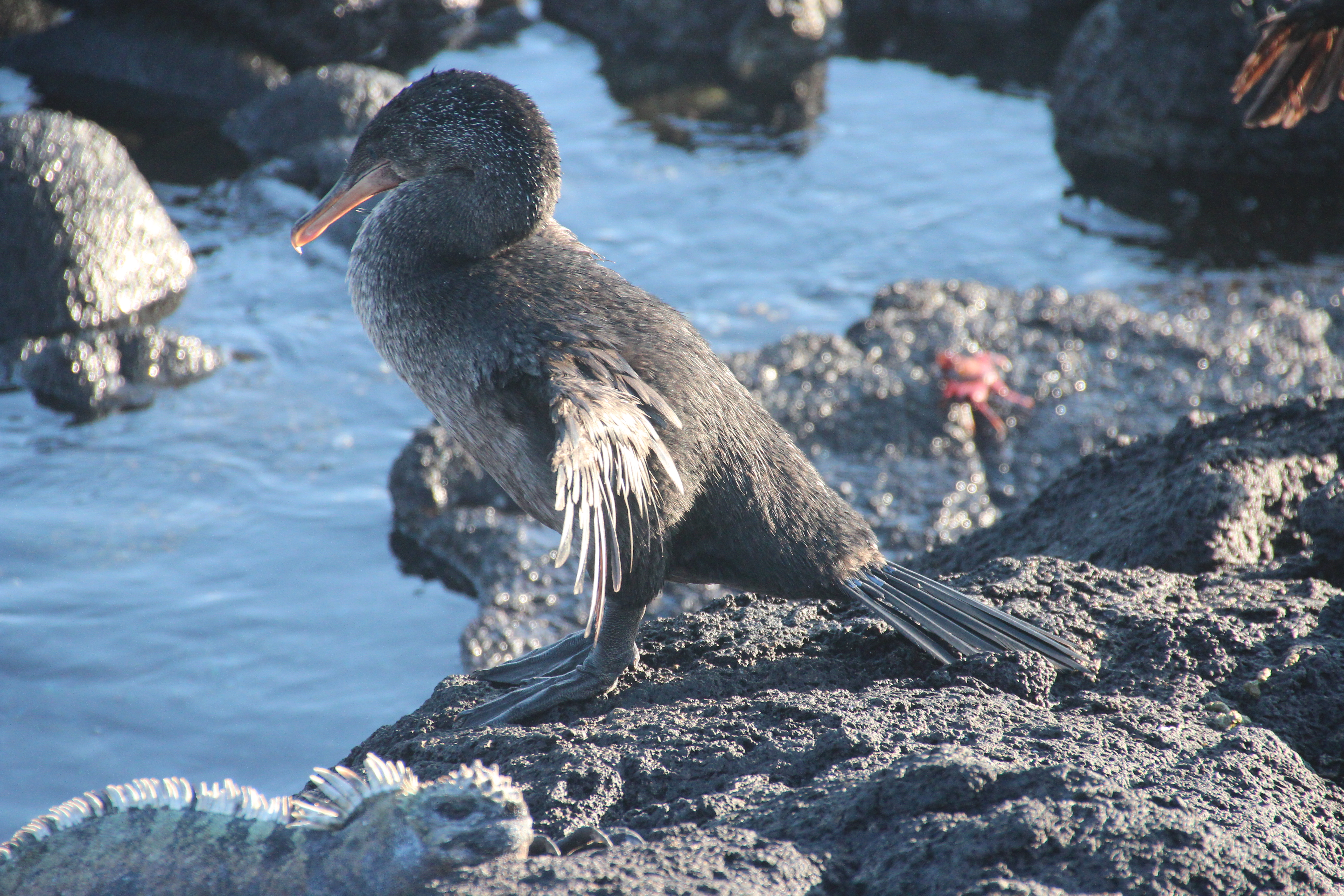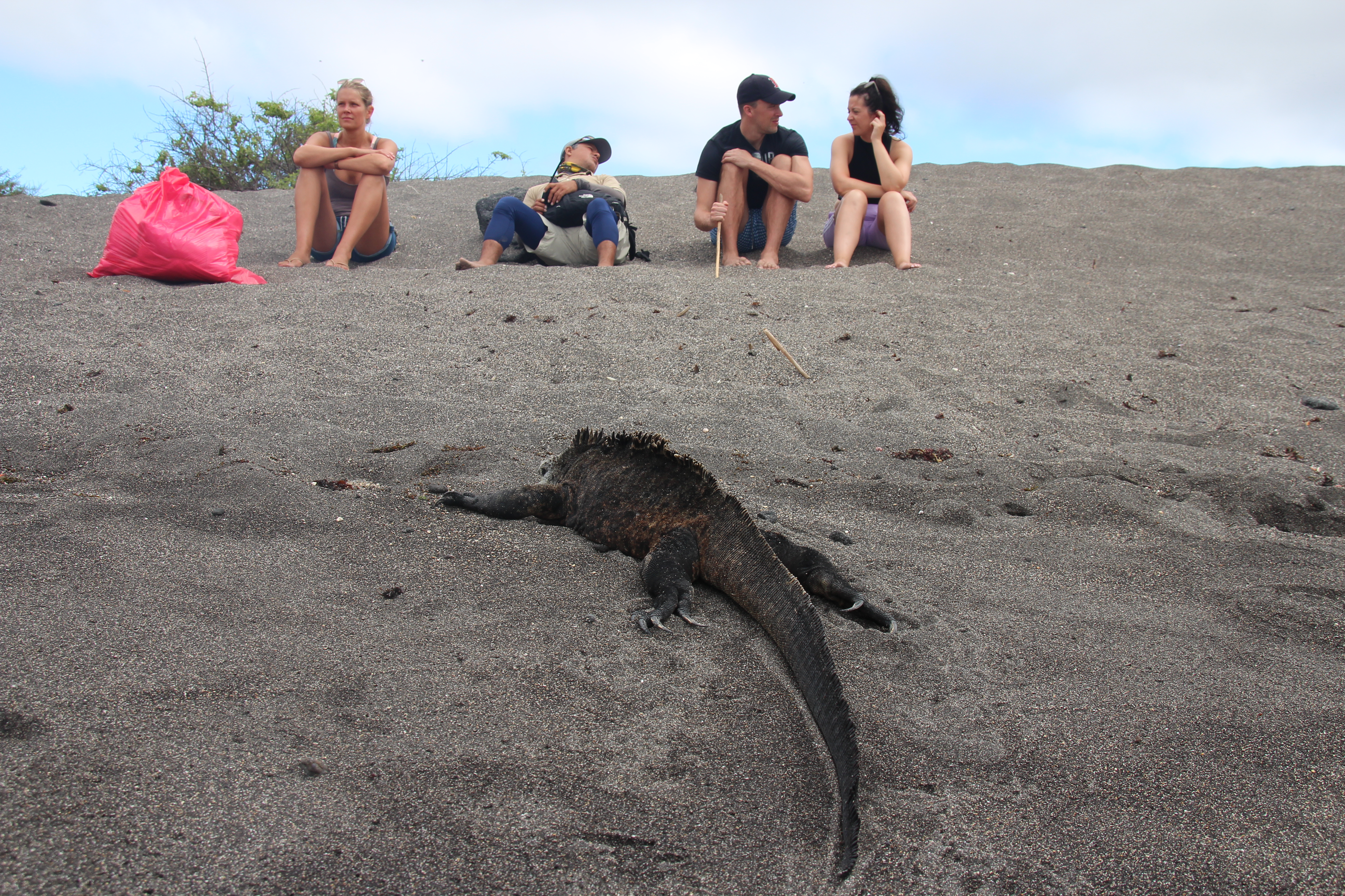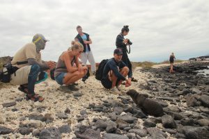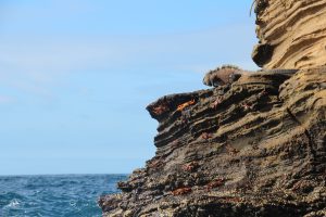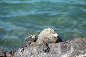 Direkt bei der ersten Fahrt mit dem Dinghy sahen wir: Seelöwen, Blaufußtölpel, Stummelkormorane, einen Glapagospinguin, grüne Meeresschildkröten, Pelikane, rote Klippenkrabben und Nazcatölpel. Besonders eindrucksvoll war der Kampf zwischen zwei männlichen Meeresleguanen. Sie versuchten sich gegenseitig vom Felsen zu schubsen, während hunderte von Artgenossen um sie herum lagen. Wir fühlten uns wie in einer Naturdokumentation!