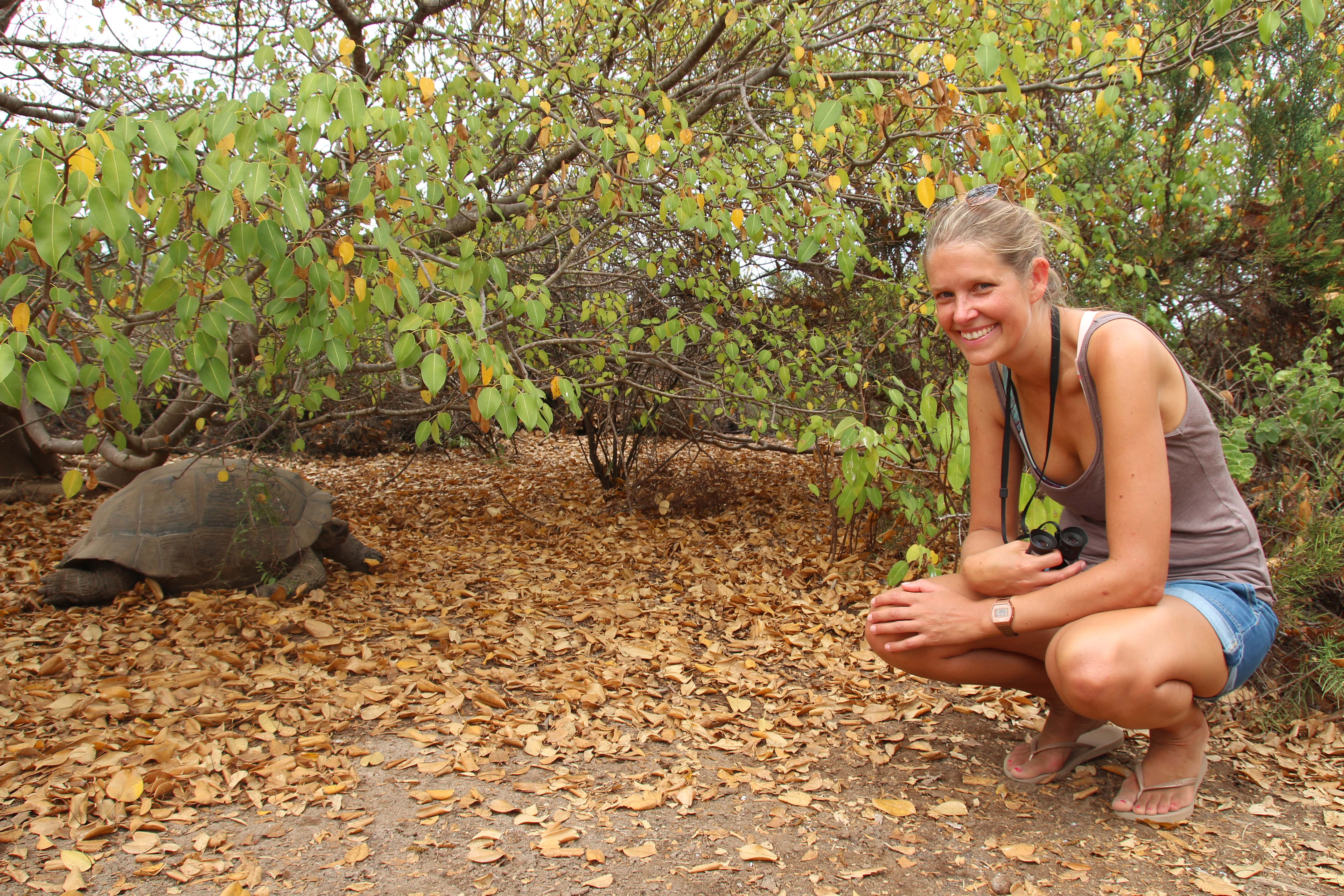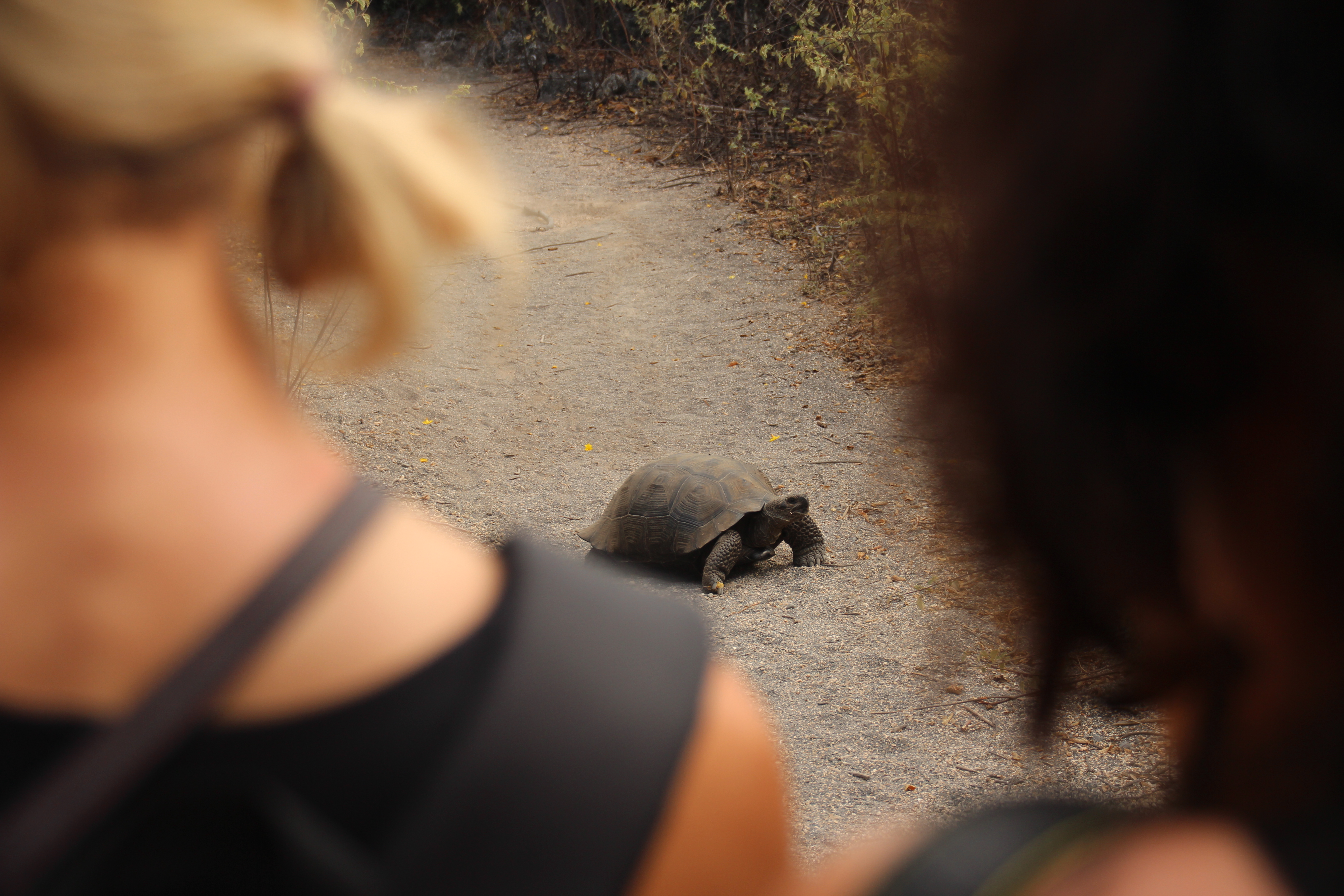 Da wir diese Nacht nicht fuhren, sondern bis 4 Uhr vor Anker lagen, erwachten wir wunderbar erholt. Von der Bahia Urbina aus machten wir uns nach dem Frühstück auf zu einer kleinen Wanderung auf Isabela. Wir sind total begeistert von unseren verschiedenen Spots – überall sieht man unterschiedliche Tiere und andere Vegetation. Auf dieser Wanderung sahen wir viele verschiedene Vögel, die uns sehr nahe kamen. Darwinfinken, pfeifende Spottdrosseln, yellow warbler und viele andere, die wir (noch) nicht kannten. Auch ein Galapagosbussard thronte beutesuchend auf einem Baum. Der eigentliche Grund unseres Besuches dieses Spots waren allerdings die Riesenschildkröten und Landleguane, die sich uns entlang des Weges zeigten. Es ist wirklich irre, wie nah man diesen Tieren kommen kann. Die Schildkröten ließen sich kein Stück aus der Ruhe bringen. Der Landleguan erinnerte uns mit seinem schuppigen Panzer ein bisschen an Viserion aus Game of Thrones.
